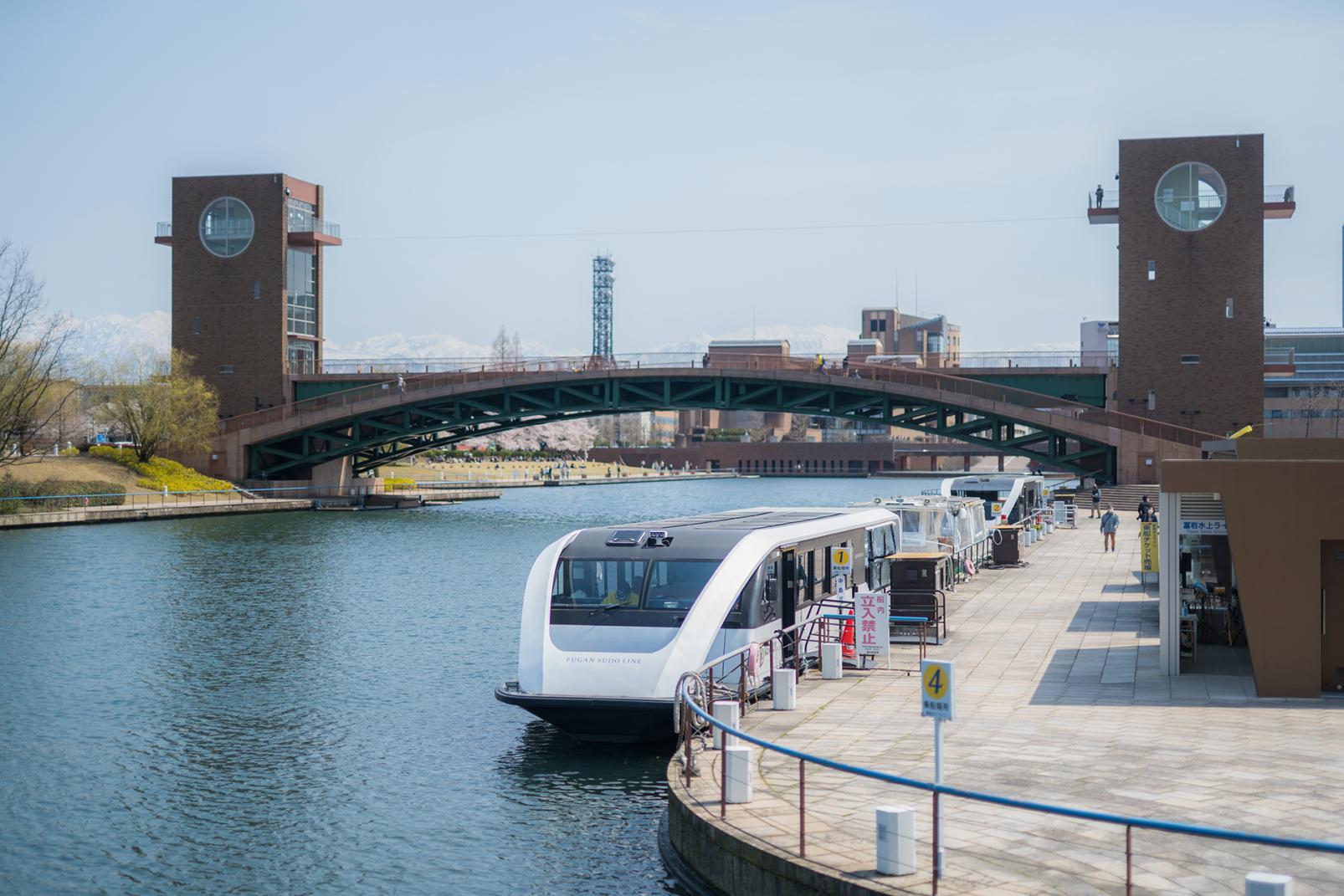 海王丸パークを出発し、「日本のベニス」と称されるノスタルジックな風情たっぷりの内川の街や、個性あふれるデザインの12の橋をゆっくりと遊覧することができます。