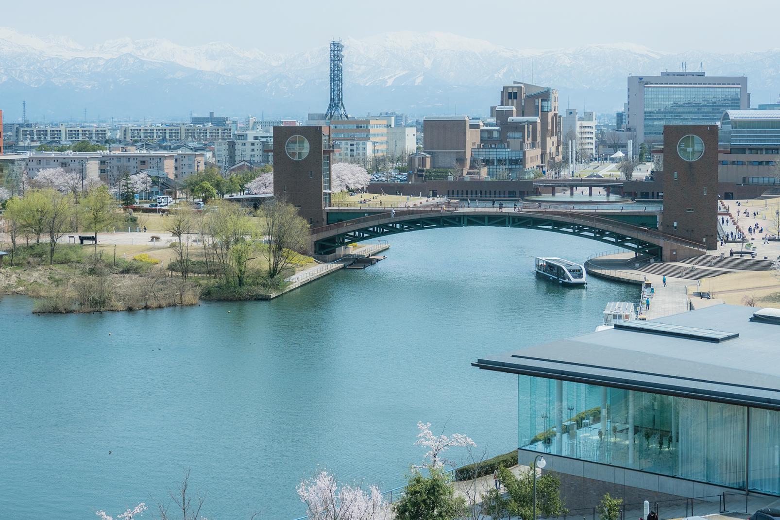 富山市中心部にある富岩運河環水公園からクルーズ船に乗ると、港町・岩瀬に直行できます。船上からは豊かな富山の自然、岩瀬では歴史ある町の今を感じることができますよ。