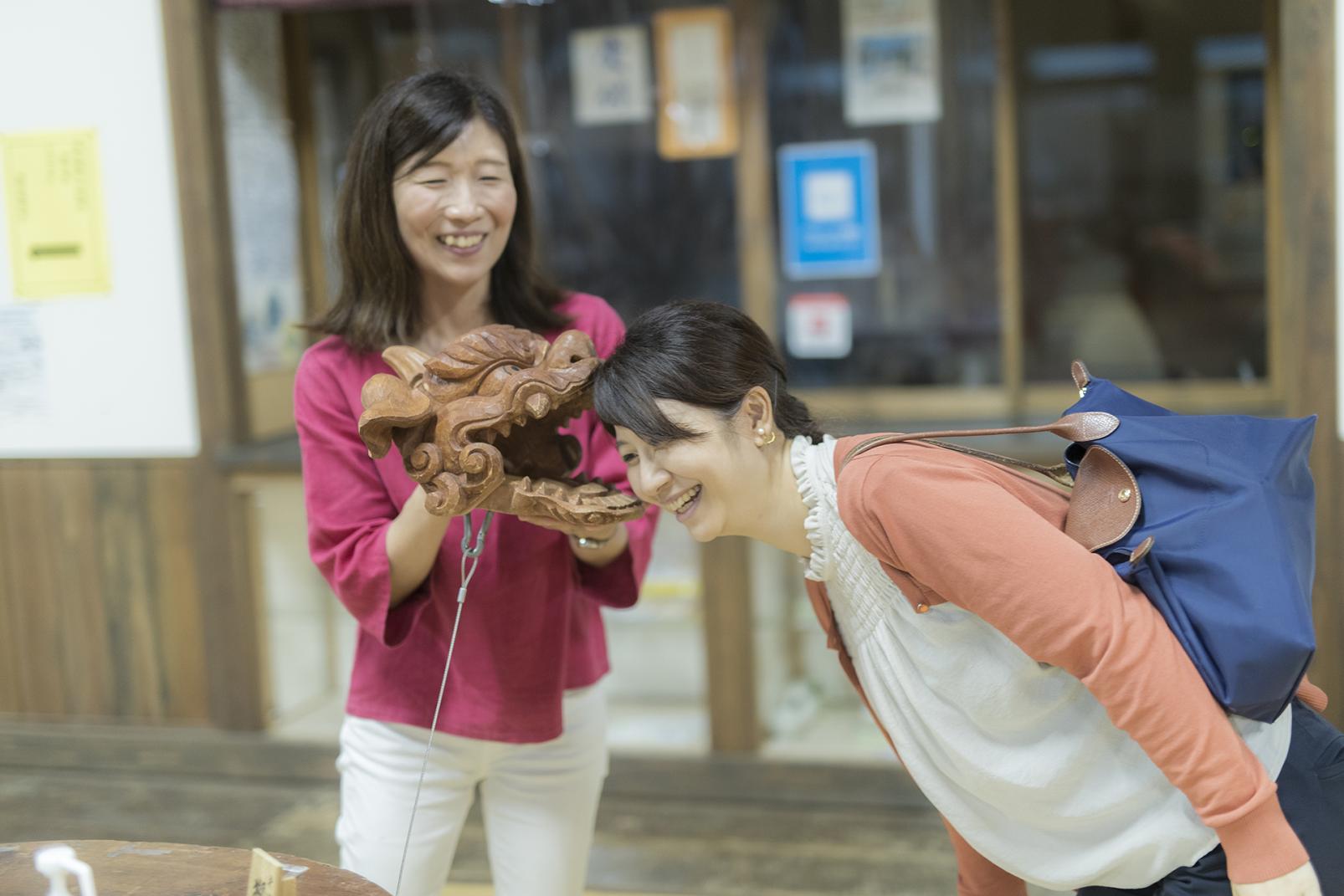 井波の彫刻師に指導を受け、木彫刻を体験できるプランがあります。制作するのはヒノキ製ぐい呑みで、鑿(のみ)を槌(つち)で打ちながら木を削ります。仕上がったぐい呑みを持って八日町通りの「若駒酒造」を訪ねると、地酒の試飲も楽しめます。