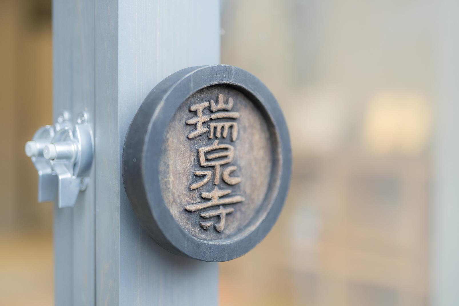 「瑞泉寺」の門前にのびる八日町通り(瑞泉寺前通り)は、彫刻師の工房や蔵元、土産店などが軒を連ね、格子戸のある町家と石畳の道が趣のある景色を作り出しています。あちらこちらの店舗をのぞきながら、のんびりと歩くのがおすすめ。軒先に木彫りの干支の動物や表札が掲げられていたり、通りに木製の看板や木彫りのバス停があったりと、まち全体が木彫刻の町ならではの装飾で彩られています。