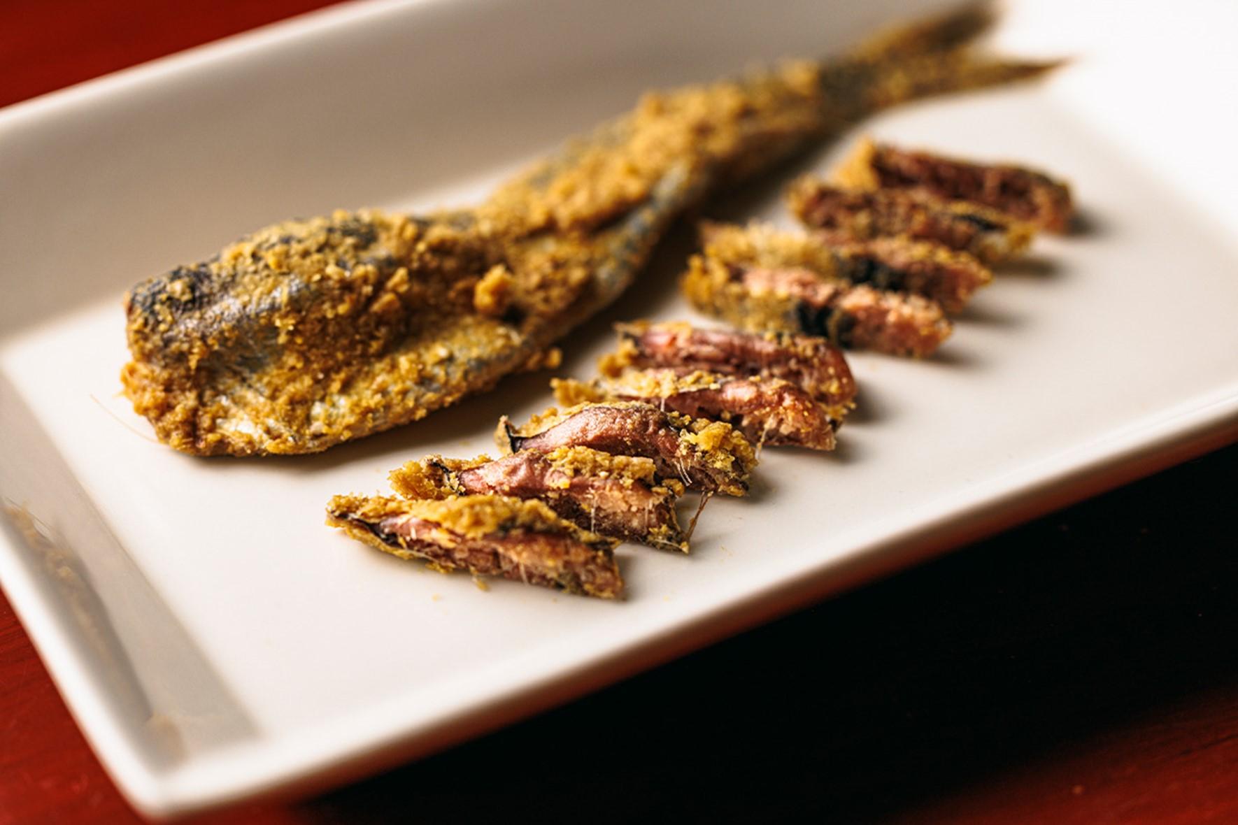 こんか漬けは北陸地方の伝統的な発酵食品。魚を米ぬかと米麹に漬け込み、半年ほど発酵、熟成させる保存食で、富山県では寒さの厳しい時期に水揚げされたイワシやサバ、ブリなどをぬか漬けにしたものを指す。諸説あるが「こんか」の語源は、「小糠(こぬか)」がなまったものと伝わり、石川県では富山県と同じく「こんか漬け」、福井県では「へしこ」と呼ばれている。ぬかは水洗いせず、さっと炙ってそのまま酒の肴にするもよし、白飯にのせて頬張るもよし。柿太水産ではポテトサラダやパスタへのアレンジも提案している。旨みの強さをいかし、多様なアレンジメニューが楽しめるのも魅力だ。