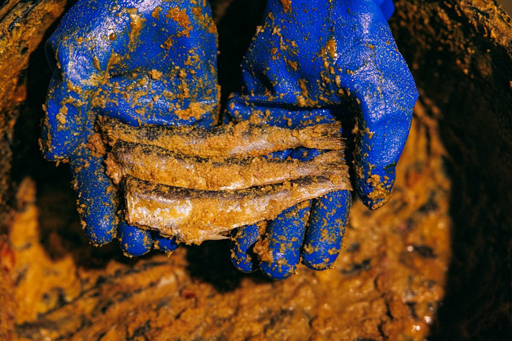 魚は鮮度が命。氷見漁港から脂ののった魚が到着するやいなや、水洗いと下処理を行い、能登産の塩をまぶして1週間ほど塩漬けする。塩漬けにすることで魚の水分が抜け、旨みがしっかりと残るという。すべて手作業のため、その日のうちに塩漬けまで行うのには手間と時間がかかる。しかしいっぽうで魚は時間とともに劣化が進む。ゆえに1日でも経過すると、塩漬けにした時点で腐敗臭がしてしまうため、時間と戦いながらも丁寧に、手を動かしていくのだ。