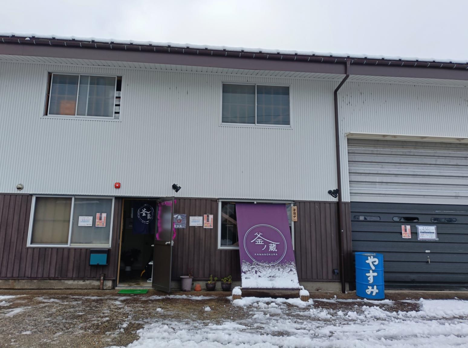 餅つき大会が行われた「コミュニティスペース釜ノ蔵」は、旧JA倉庫を借り受けて整備した地域の拠点施設であり、住民がいつでも立ち寄り交流できるスペースとして運営されています。旧倉庫なので建物自体は無機質なのですが、施設内の什器(じゅうき)は地域の方々から持ち寄られたものを使用しており、とても味わいのある雰囲気です。