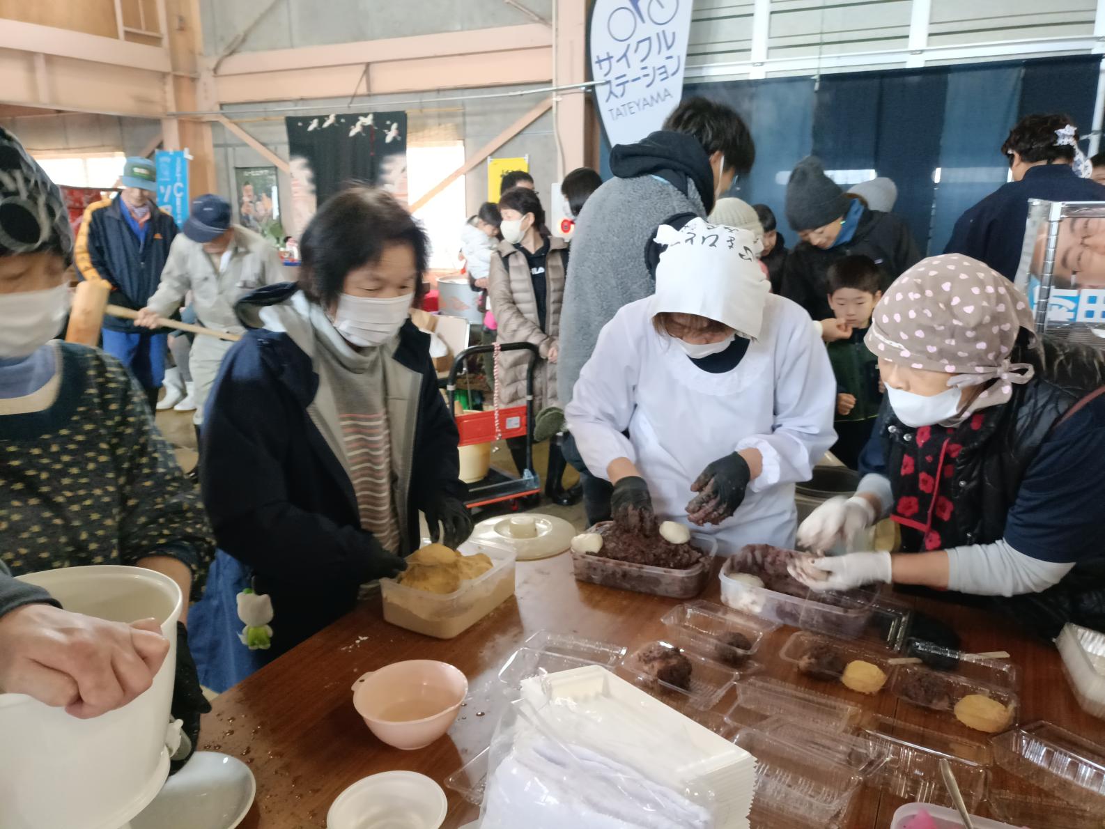 餅は1パック100円。あっという間に餅を買い求める方々で長蛇の列が出来ました。あまりの列に私もお手伝い。私のような地域外の者もスッと入って違和感なくお手伝いできたのは、地域外の人を受け入れる温かい風土があるからかもしれません。