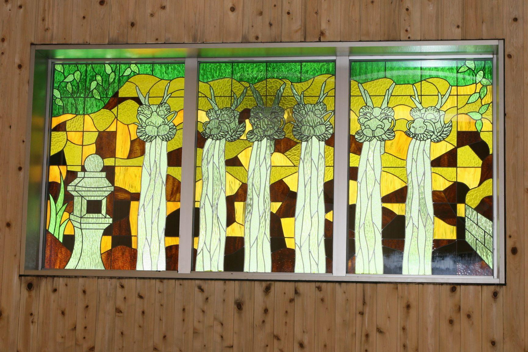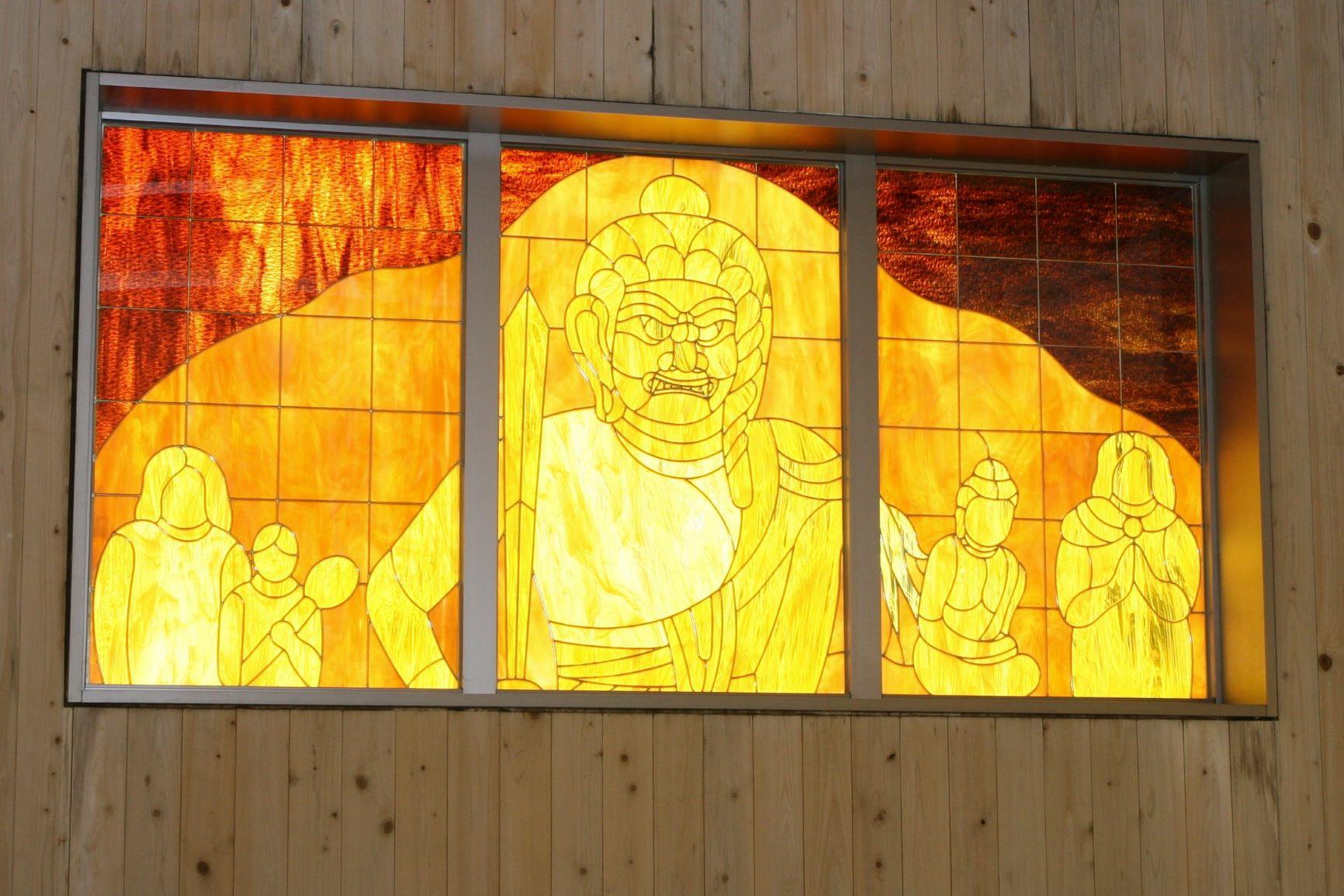 町中と日石寺を結ぶ道中にある天然温泉かけ流しの公衆浴場です。建物には地元の杉や檜が使用され、内風呂の天井には古民家を思わせる立派な梁も。内風呂の窓を飾るステンドグラスには不動明王と六本滝が描かれ、週ごとに入れ替わる男湯と女湯をそれぞれ彩ります。シャンプー・石けんなどはフロントで購入するか持参が必要で、2種の内風呂と露天風呂をゆったり楽しめます。駐車場は30台分を完備。風呂あがりにいただく瓶入りの牛乳・コーヒー牛乳は格別です。