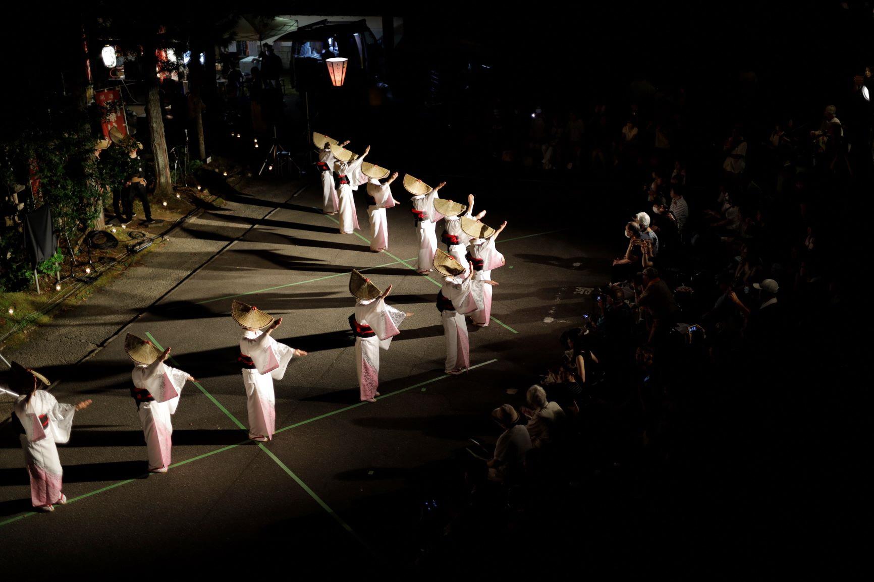 夏場は特に人でにぎわう日石寺ですが、毎年8月の夜を彩るイベントとして大岩おわら宵の盆が開催されています。この場所に惚れ込んだ、上市町のおわら踊りを愛する風の会さんと町出身・在住で民謡歌手の寺崎美幸さんが意気投合されたことをきっかけに始まったものです。令和6年の開催で10回目となり、歌と踊りで地域を盛り上げる取り組みとしてしっかりと根差しています。