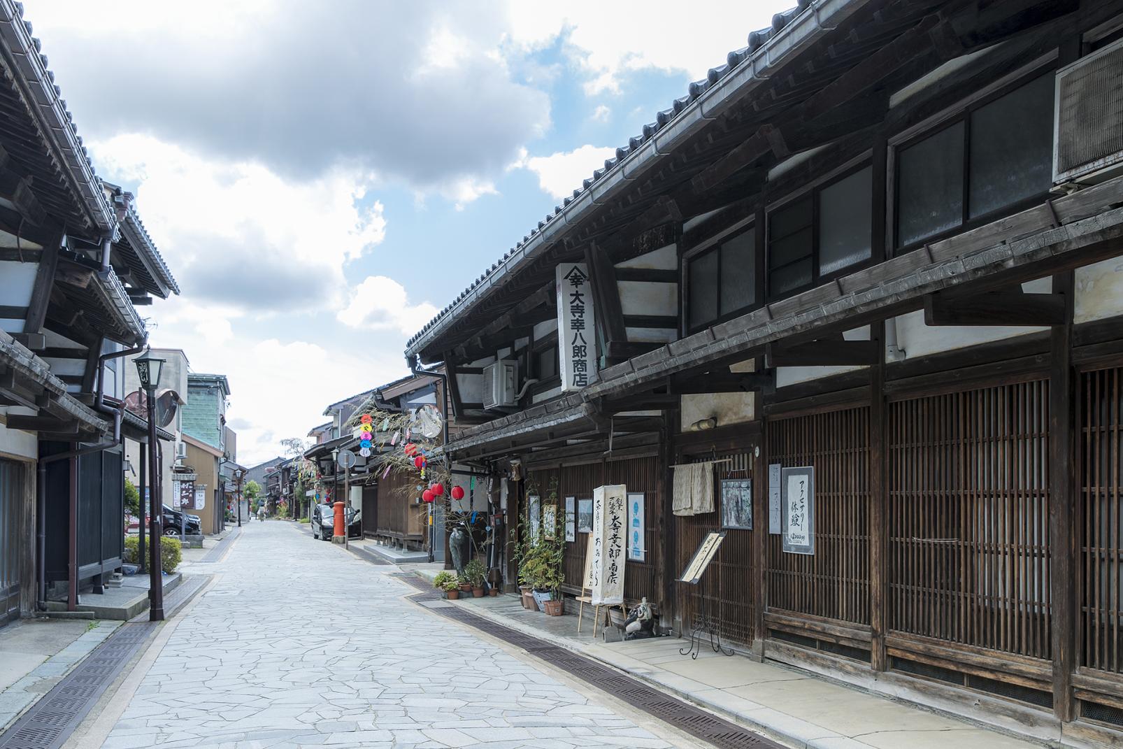 山町筋は1609年に高岡が開町した際に、前田利長が近隣から町人を招いて住まわせた商人の町で、江戸から明治にかけて発展しました。御馬出町から小馬出町にかけての通りには、土壁の上に漆喰(しっくい)などを塗って仕上げた土蔵造りの建物が現在も残されています。1900年に大火に見舞われたことから、防火意識の高い商家が多く見られるのが特徴です。山町の名は、重要有形・無形文化財に指定されている「高岡御車山祭」の御車山を継承していることが理由にあります。