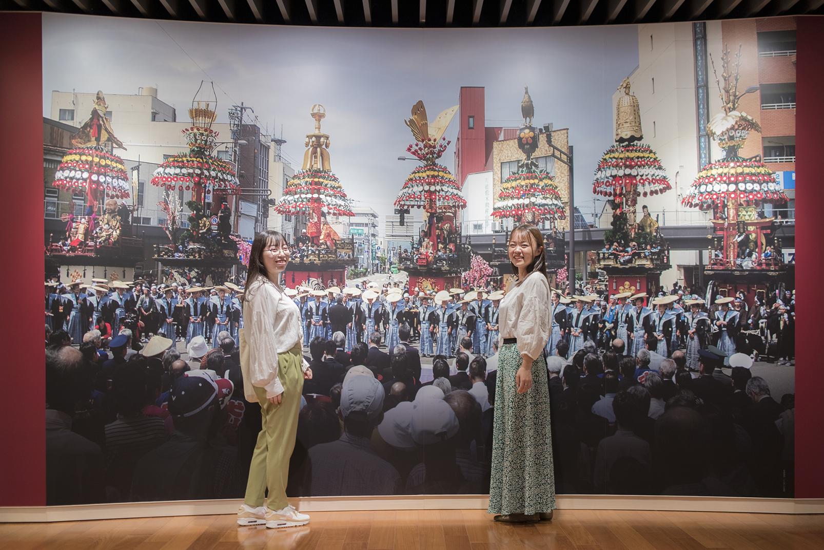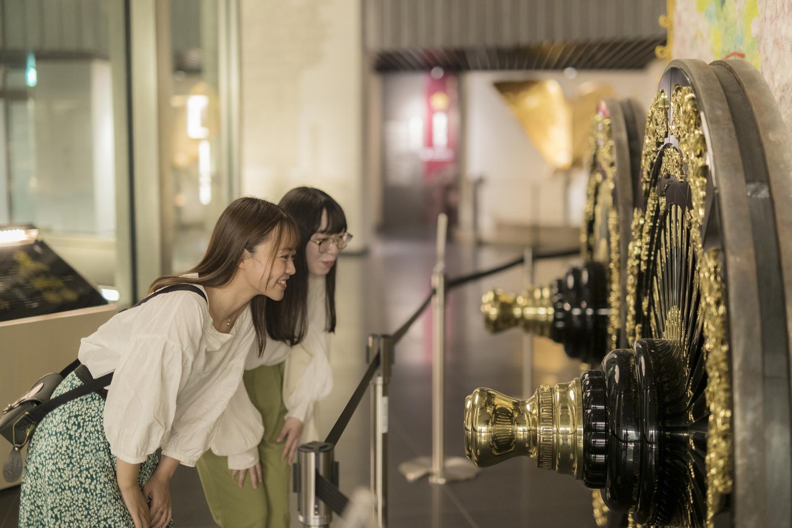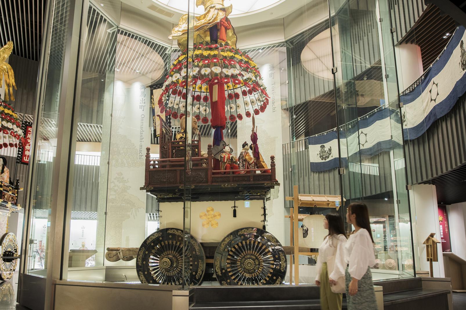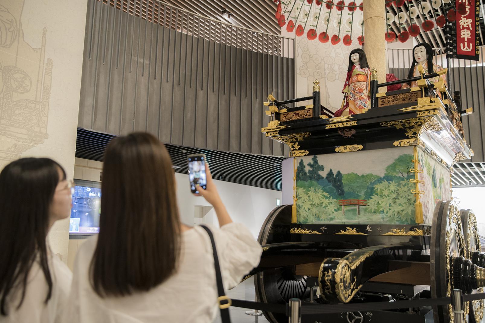 毎年5月1日に実施される「高岡御車山祭」で巡行する御車山を、年間通して展示している施設が山町筋にあります。御車山の山車にはものづくりのまち・高岡の工芸技術が結集しており、金工細工や漆芸など地元の職人たちが磨いた伝統技術が随所に用いられています。高さは8〜9m、車輪だけでも直径約2mもあり、人の手だけで曳き回すとは思えないほどの迫力です。※展示してある御車山は時期によって異なります。