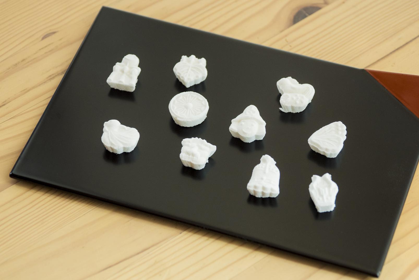 老舗菓子店「大野屋」で明治期に誕生した「とこなつ」は、越中の国守を務めた万葉の歌人・大伴家持の歌から名をとった銘菓で、長年に渡って愛されています。近年は、御車山などをモチーフにした「高岡ラムネ」が人気だそう。御車山パッケージのラムネには、鉾留(ほこどめ)や加賀藩の梅鉢紋(うめばちもん)などをモチーフにしたラムネが入っています。「高岡ラムネ」は、富山県の米粉や高岡の国吉りんごの果汁を原料にしています。