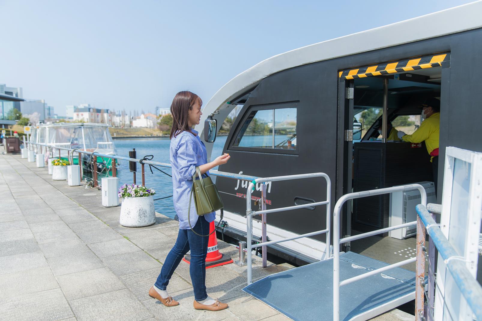 遊覧船に乗って富岩運河を水上クルーズ、岩瀬へ直行