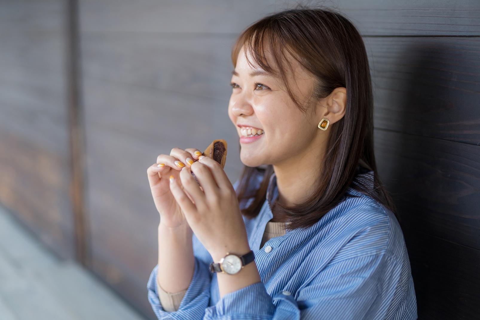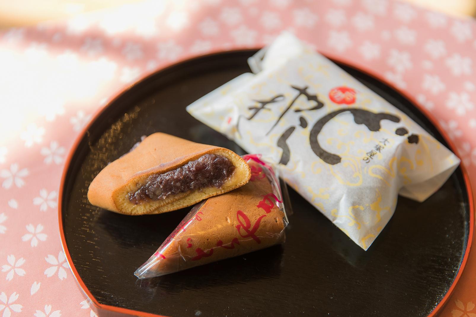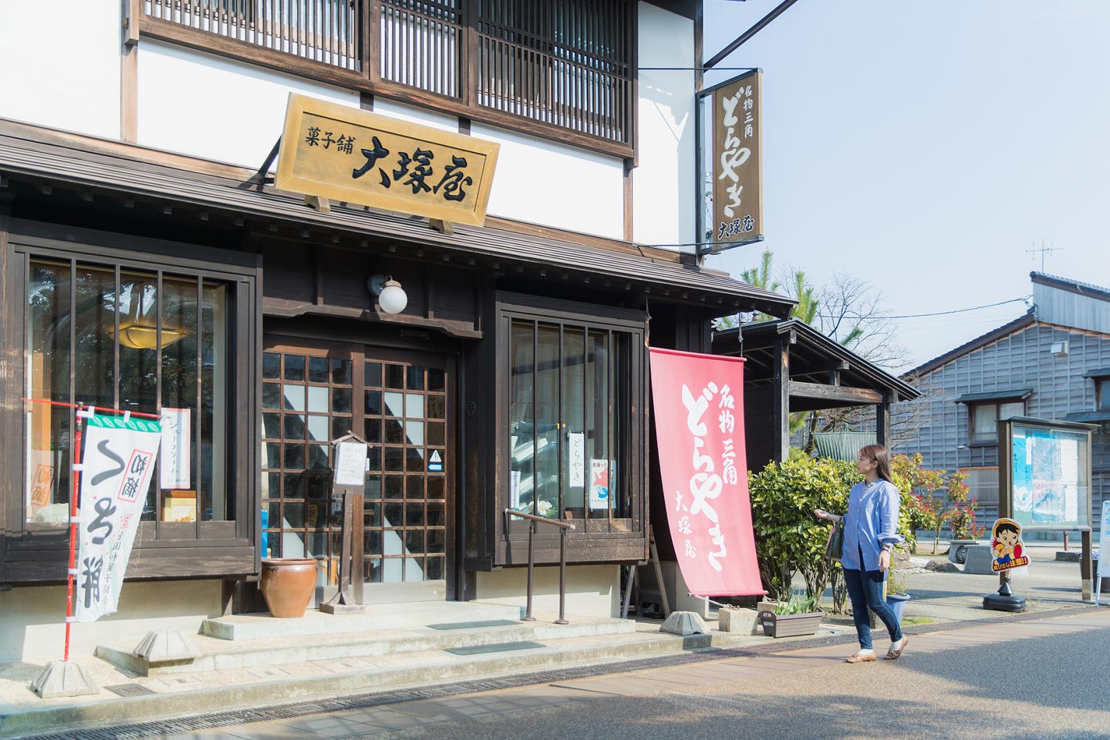 お土産やおやつには、岩瀬名物「大塚屋」の三角どらやき