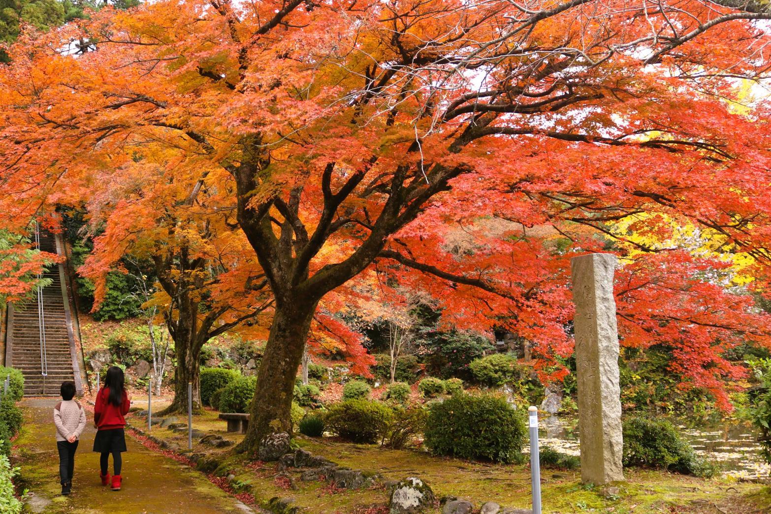禅道場で有名な臨済宗国泰寺派の総本山にふさわしい、威風堂々とした庭を取り巻くように木々が静寂な紅葉をする。山もみじ、かえで、イチョウ、はぜなど。 -