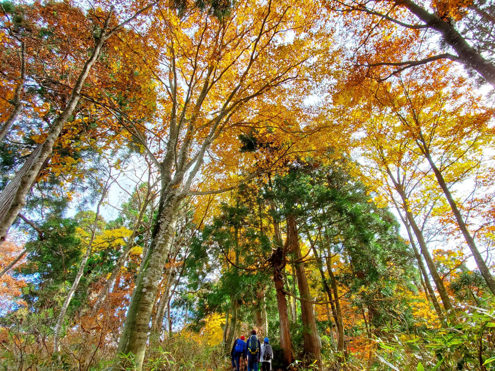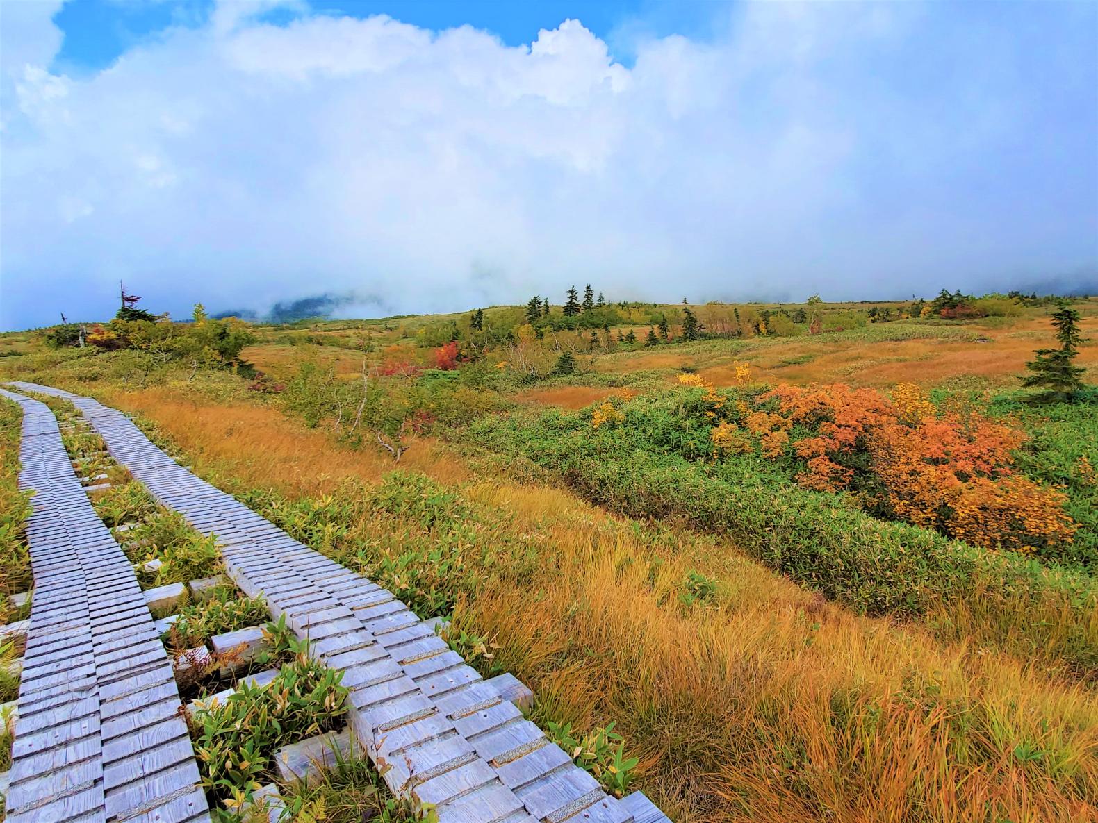 10月中旬からブナやナナカマドの紅葉が始まります。遊歩道では、紅葉した木々のトンネルが出迎えてくれます。 -