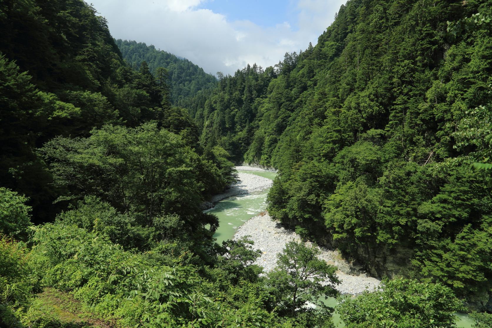 北アルプスに深く刻まれた、日本有数のV字形の谷「黒部峡谷」。日本三大渓谷・日本の秘境100選のひとつでもあります。黒部峡谷は、北アルプスのほぼ中央の鷲羽岳に源を発し、長さ86km、標高差3000mを流れ下る黒部川の上・中流域に、切り立った深いV字峡を形成しています。