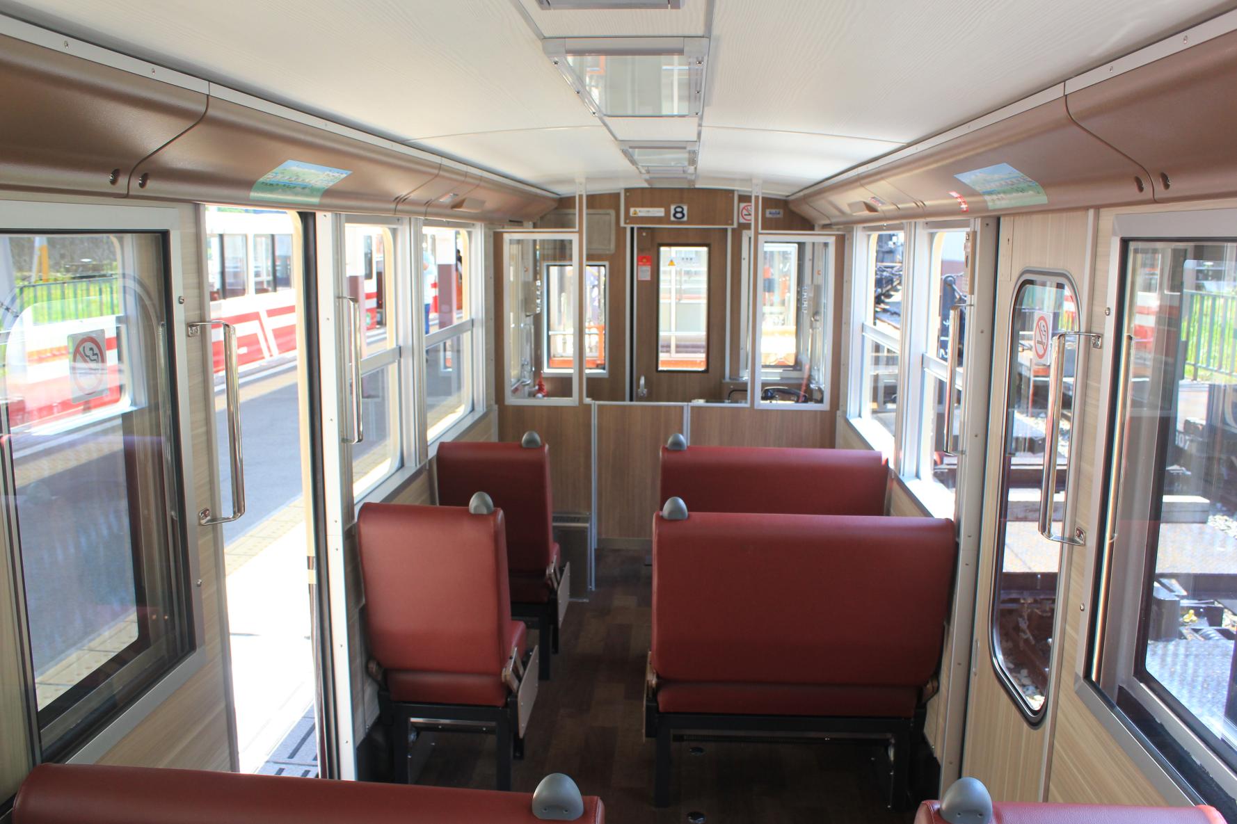 開閉可能の窓付きタイプ。座席は転換できるクロスシートで横一列3人掛け。運賃+600円。ゆったり旅を堪能できます。時刻によっては乗降口が大きいバリアフリータイプの客車もあります。