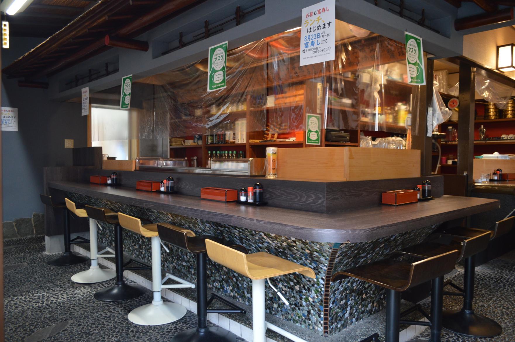 魚屋さん直営のお寿司屋さんとして、新鮮な魚介をリーズナブルな価格で味わえるお店です。地元の人をはじめ観光客なども多く訪れる人気の理由はメニューの幅広さ。ちょっと気軽に1杯というときのおつまみメニューから、食事をしたいときの定食や一品料理など、それぞれのシーンに応じた楽しみ方ができます。またカウンターでは地元の人との交流や店長との会話を楽しみながらすごせるアットホームな雰囲気です。