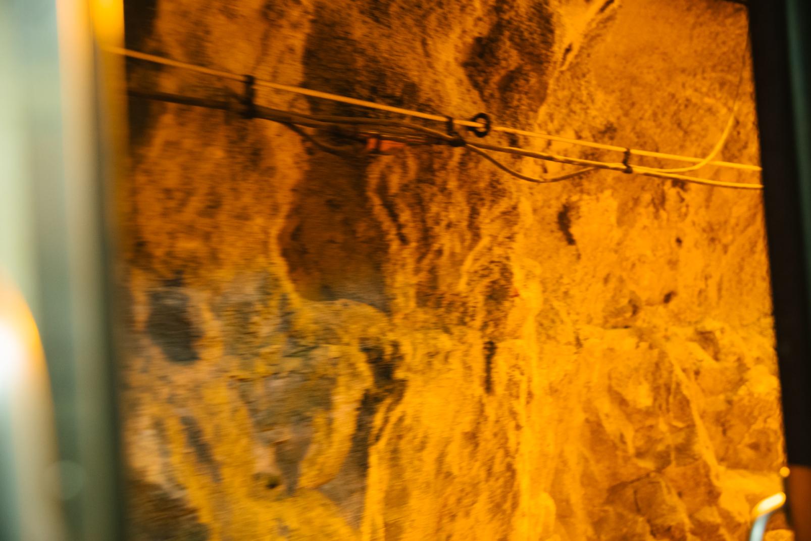 掘削のときにドリルで岩盤を削った跡も残っていて、工事の大変さが間近で感じられます。上部軌道トンネルと黒部トンネルでは黒部宇奈月キャニオンルートの運行開始に向け、関西電力が安全対策工事を実施しています。