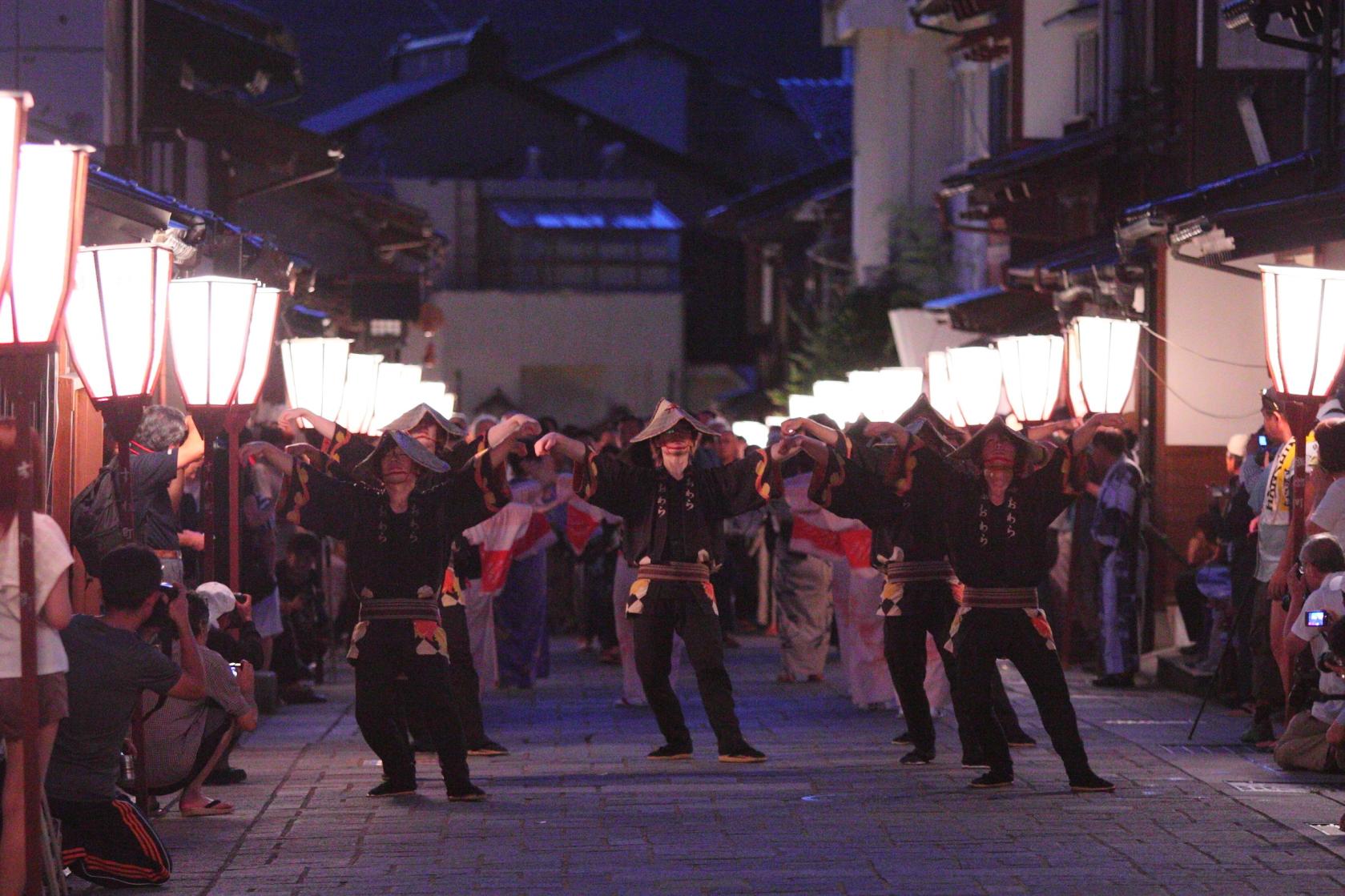 越中の小京都、城端で開催され、勇壮な踊りが町の至る所で繰り広げられます。情緒あふれる街並みで、各町内や民謡団体がむぎや節などを披露する「街並み踊り」は必見!