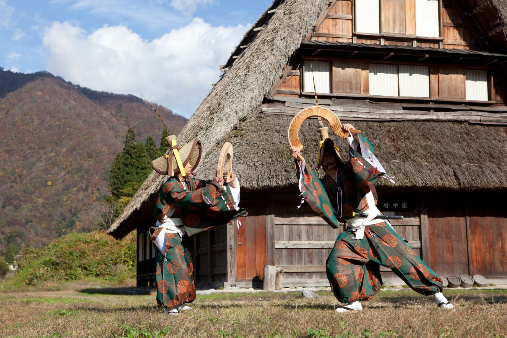 五箇山と城端では、毎年9月下旬に麦屋節が主役のお祭りが行われ、勇壮で優美な踊りが繰り広げられます。
