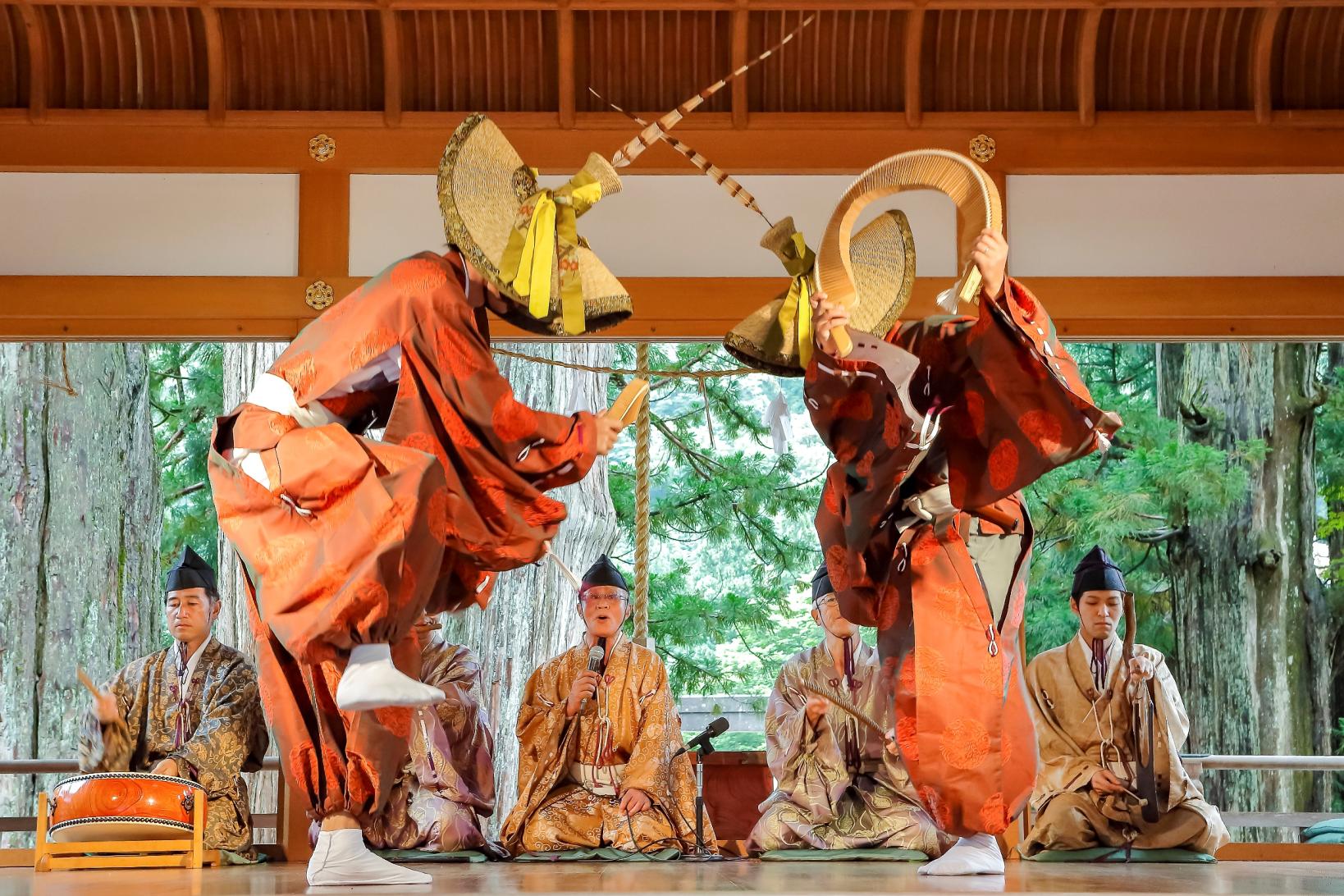 もっと見る五箇山の秋の風物詩。風情ただよう神社の境内で、哀調を帯びた調べにのせて勇壮な舞が繰り広げられます。地元の民謡保存団体による「舞台競演」では、麦屋節をはじめ五箇山民謡の数々が堪能できます。
