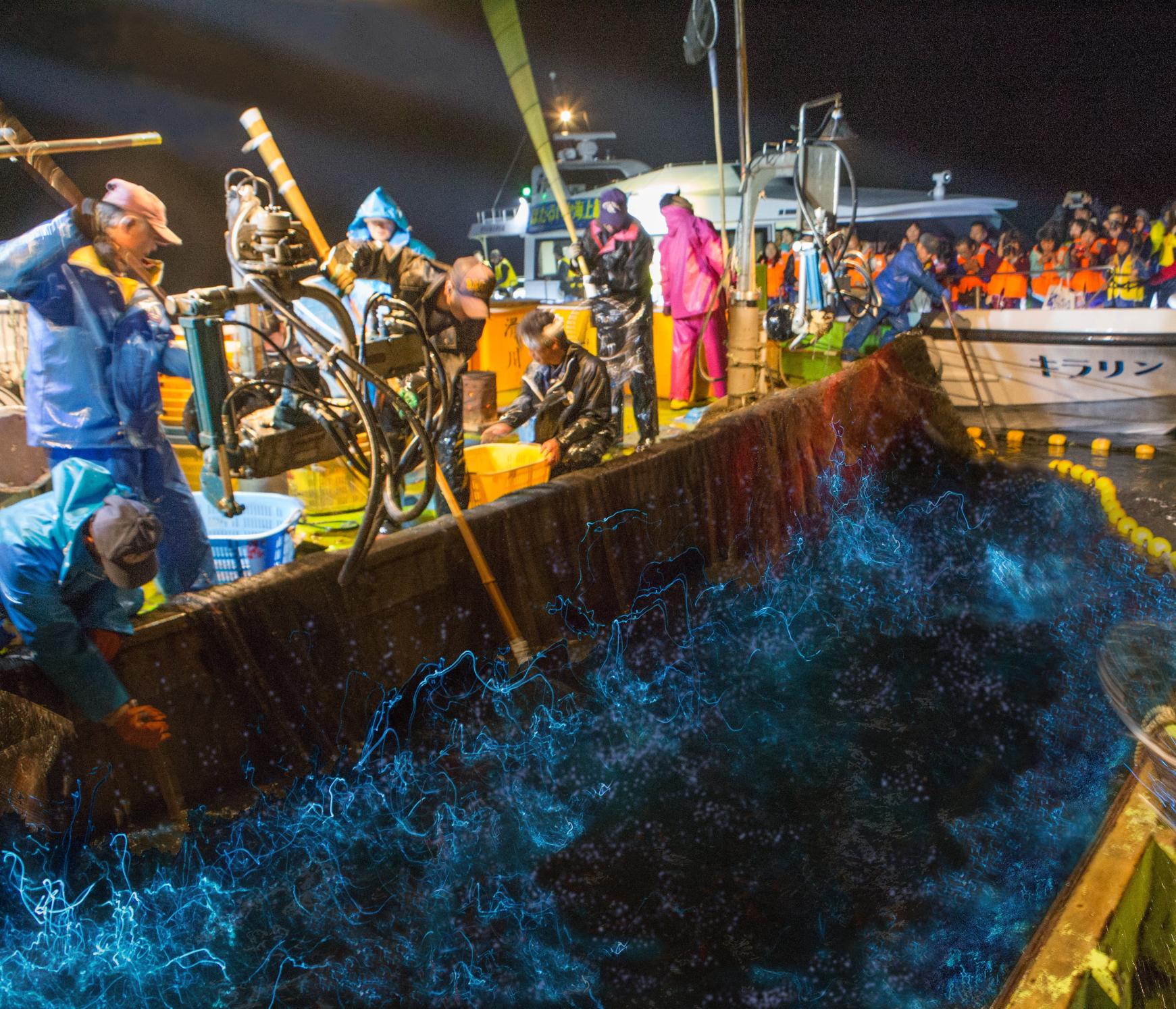 富山湾の春の風物詩「ホタルイカ漁」を見学できる海上観光です。夜明け前に出港し、きらめくホタルイカの神秘的な光や漁師たちの漁の様子など、貴重な瞬間を体験をすることができます。富山湾でしか見られない感動の体験です。また、立山連峰にのぼる朝日も忘れられない思い出となるはずです。
