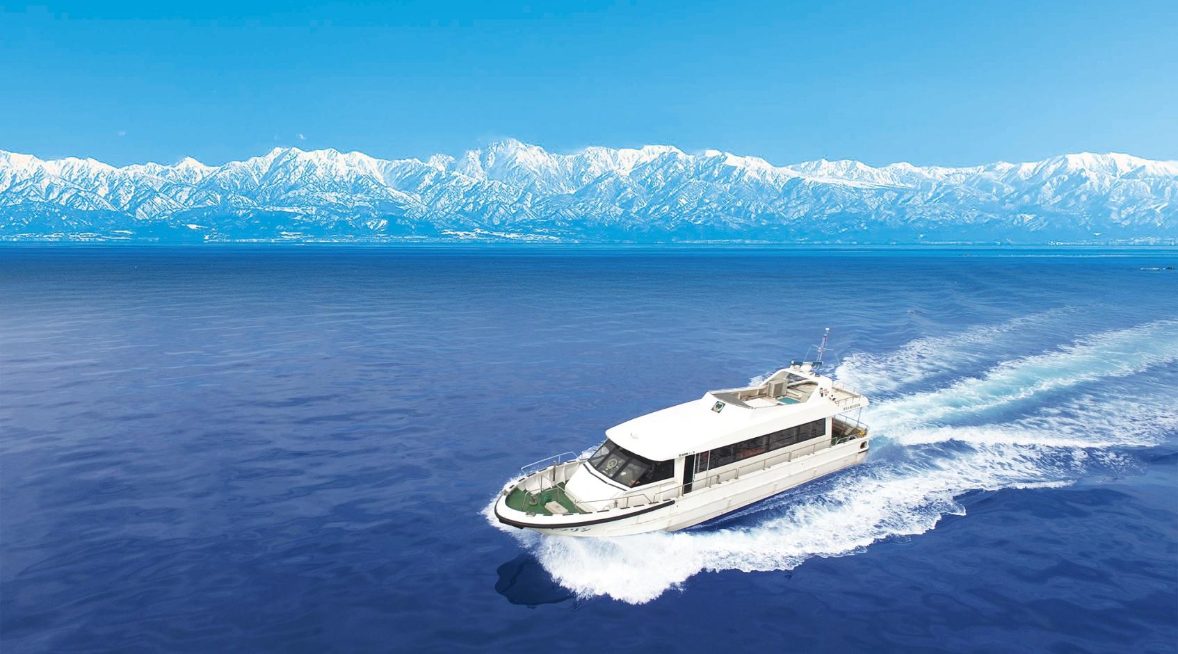 世界が認めた美しい湾、富山湾から望む立山連峰の大パノラマ!標高3,000m級の北アルプスの景色を楽しみながら、海風を思う存分に感じることができる爽快な船旅を、是非ご体験ください。
