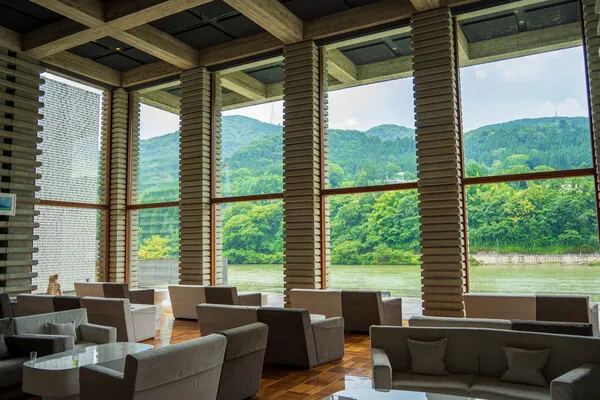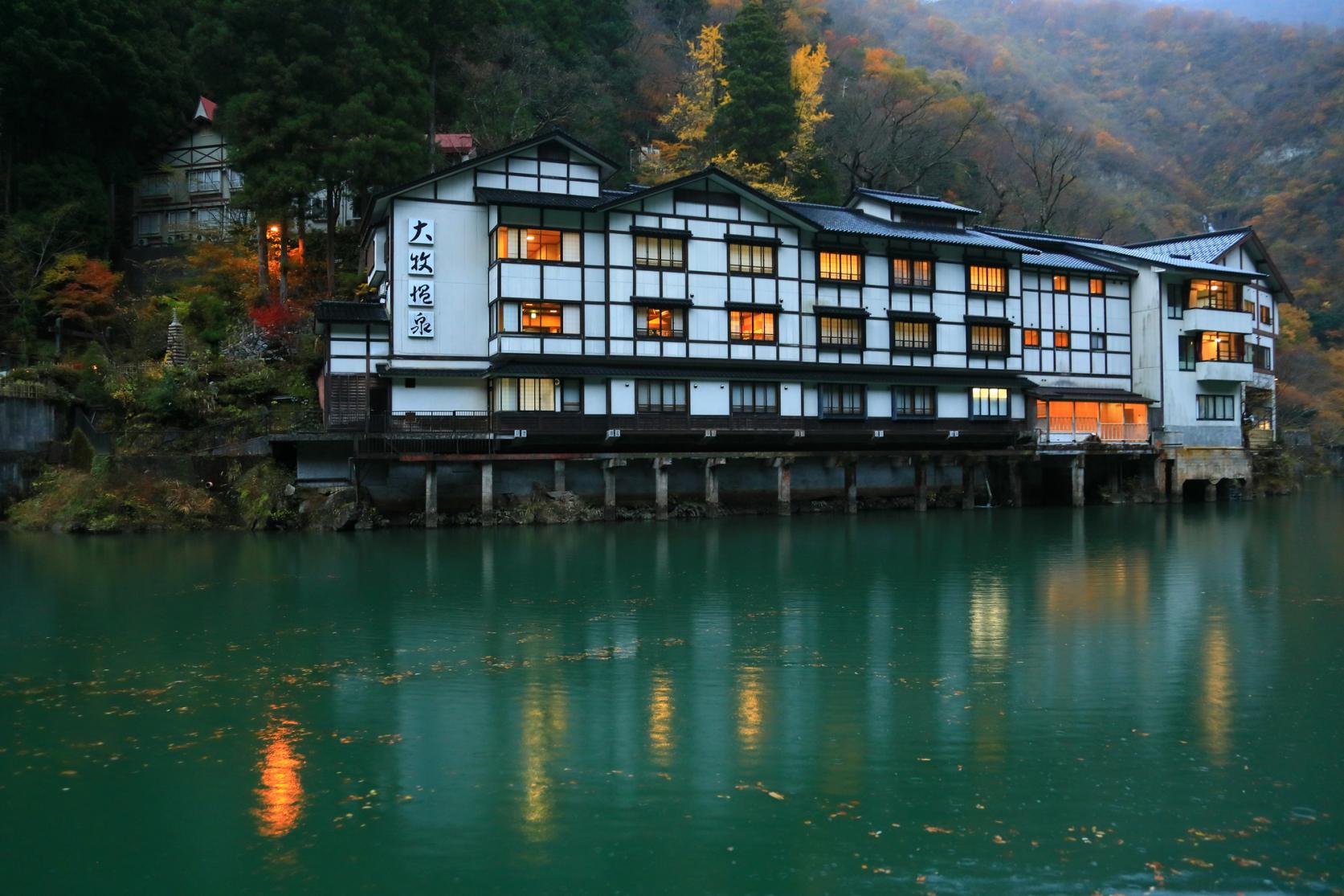 公式HP庄川峡遊覧船に乗り、約30分でたどり着く「大牧温泉観光旅館」。