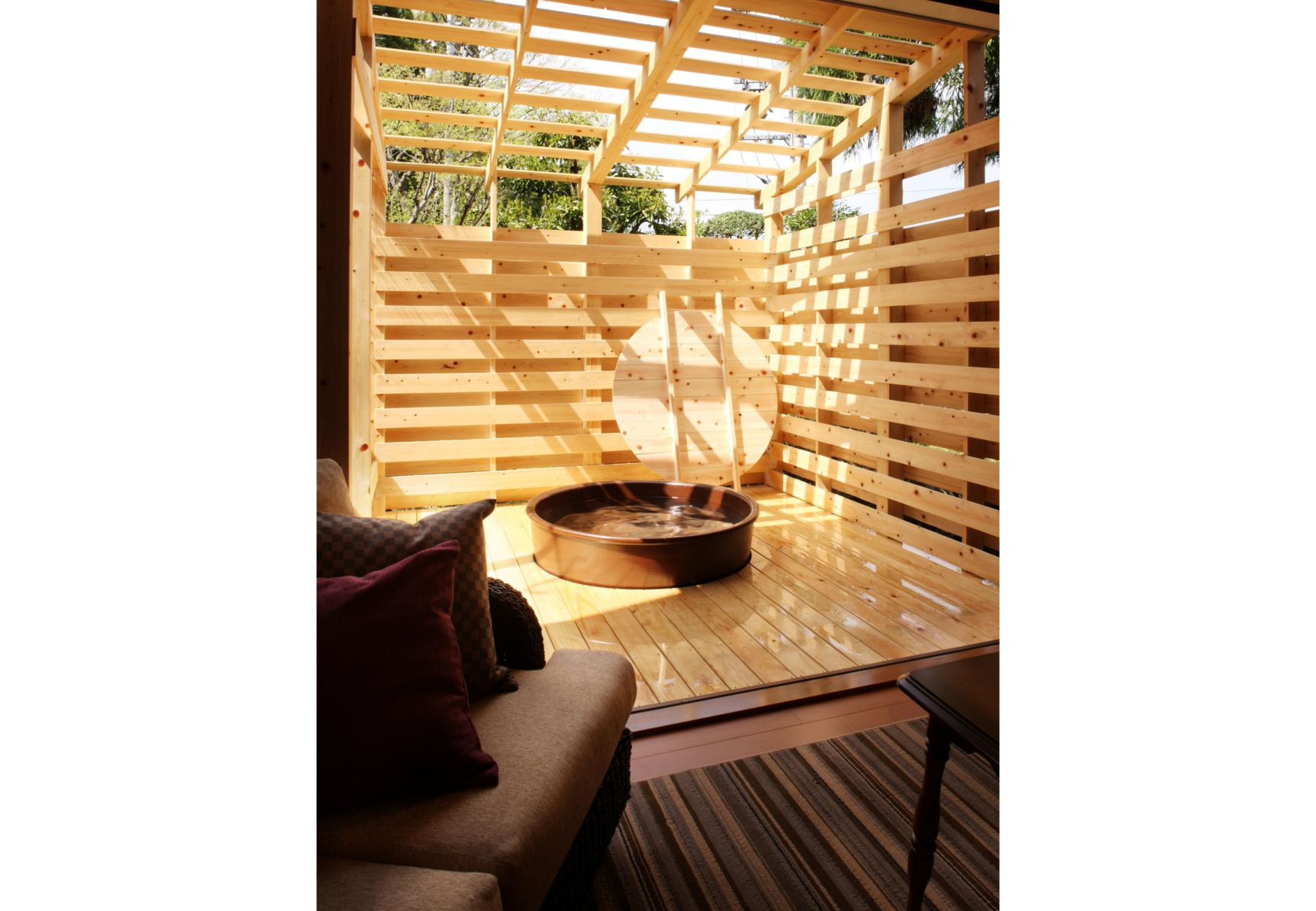 外のテラスではワンちゃんと過ごすことができるので、一緒に水辺の景色を眺めたり、鳥のさえずりや水の音を聞きながら時間や季節の移ろいをお楽しみください。