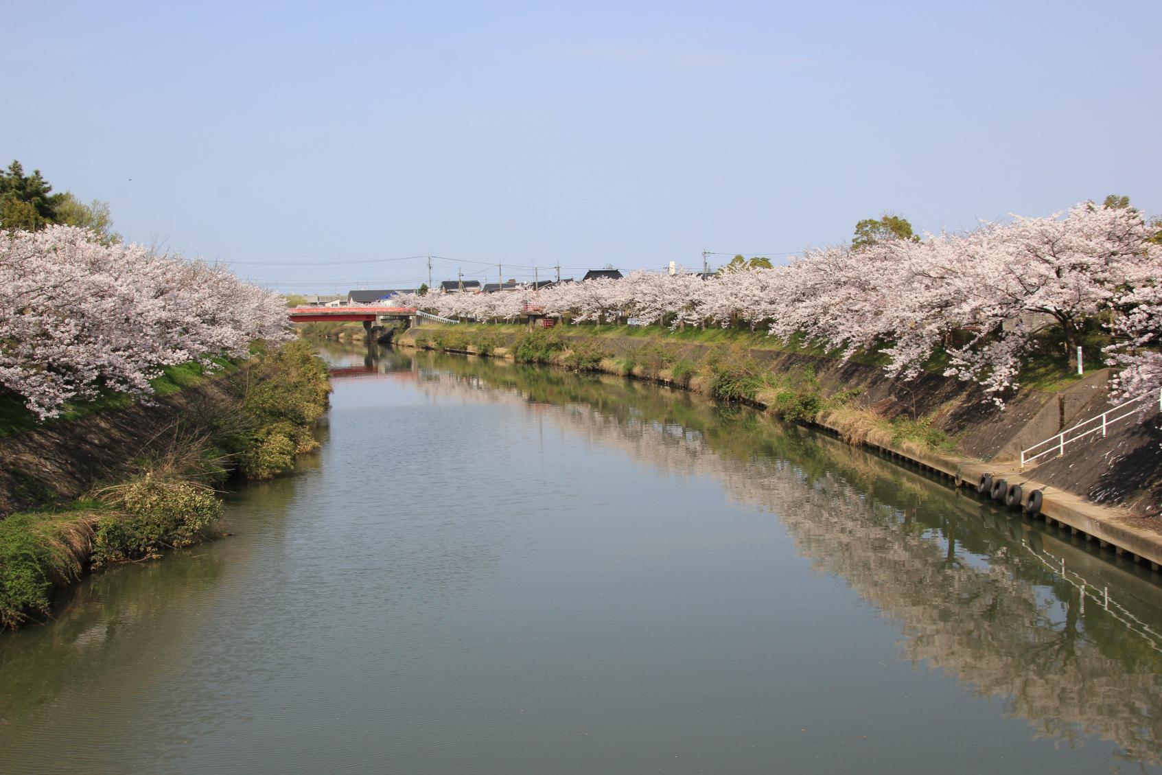 下条川の両岸約2700メートルにわたってソメイヨシノが約600本植えられています。満開のサクラを眺めながらの散策は、ゆったりとした時間の流れを感じられることでしょう。 -