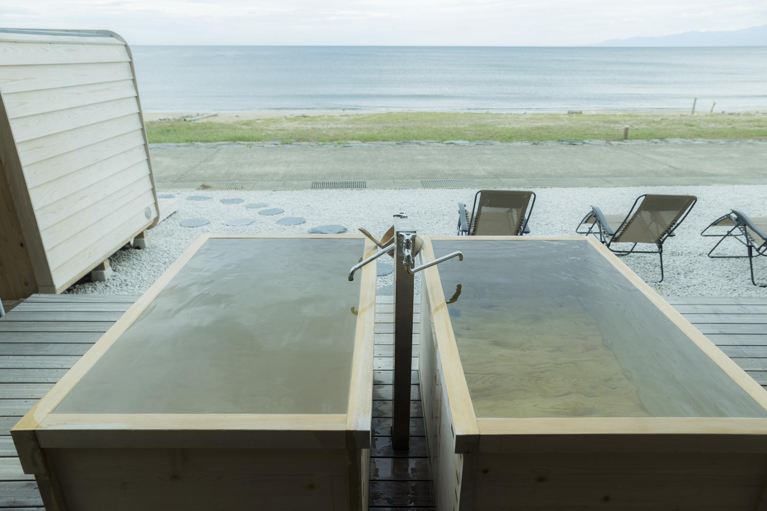 水風呂は温泉と地下水の2種類が楽しめるほか、目の前の海に飛び込む贅沢なクールダウンも。インフィニティチェアもかんびされているので、思う存分にととのう体験ができます。
