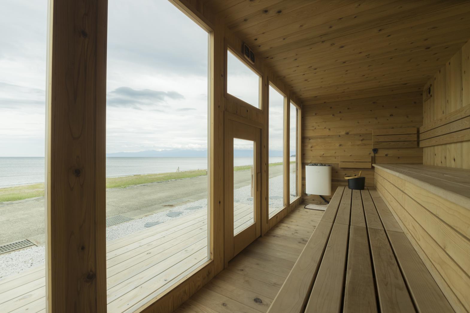 前面展望で日本海を目の前に楽しむことができるサウナが自慢の民宿。ストーブが2つ設置された広々としたサウナ室はセルフロウリュもできる仕様で、自分好みの温度で楽しむことができます。