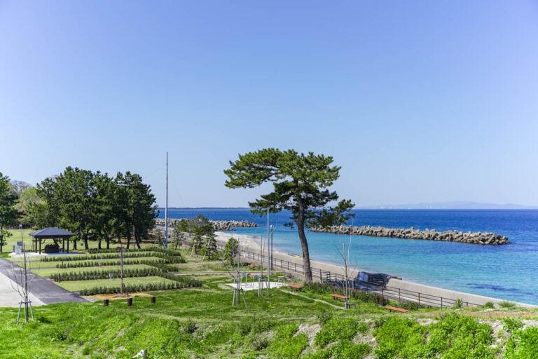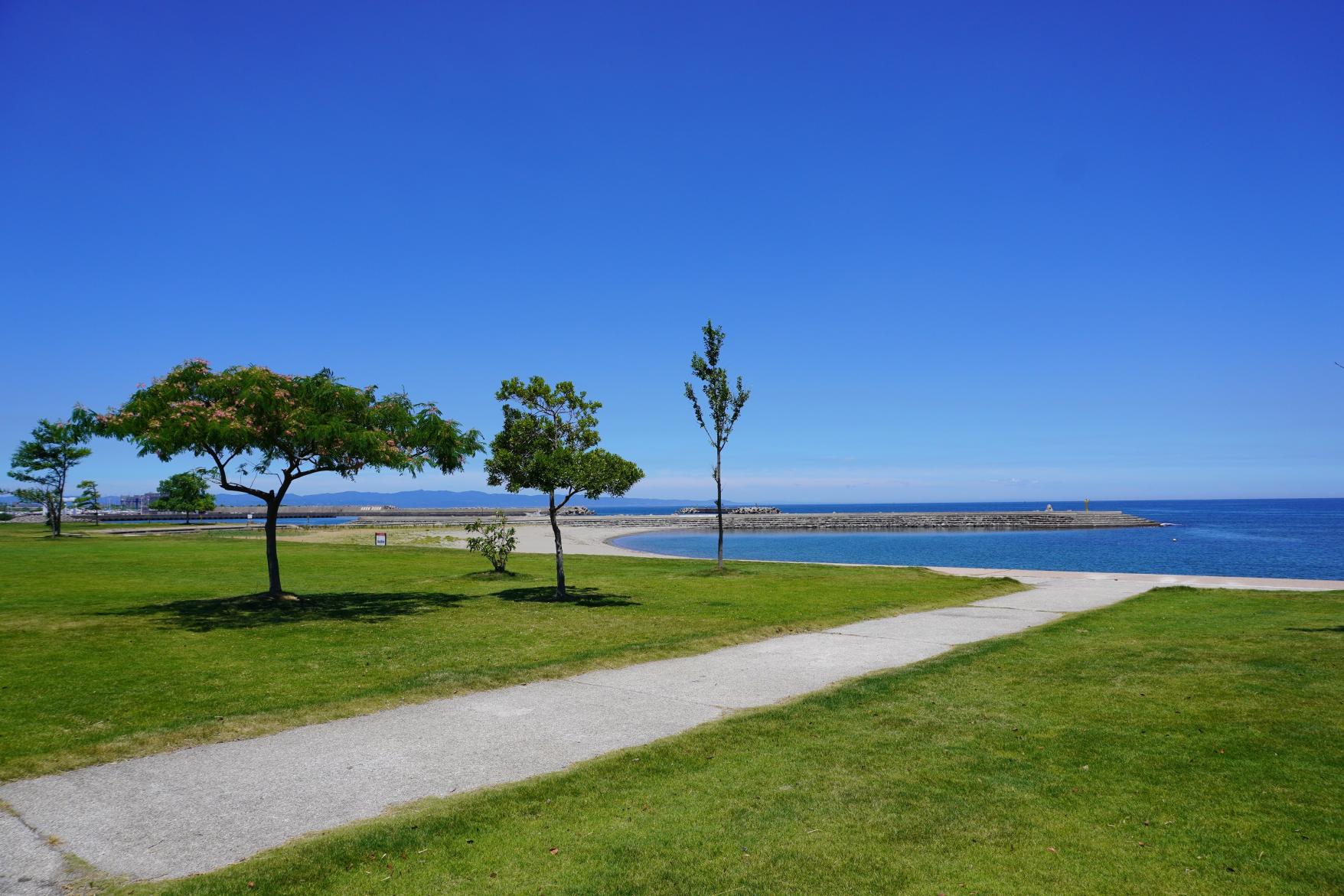砂浜と芝生広場が整備された市内唯一の海水浴場で、トイレ・シャワーなどもあります。ブイロープによる遊泳区域を設置しており、上記17日間は監視員もいるのでお子さんが一緒でも安心してお過ごしいただけます。 -