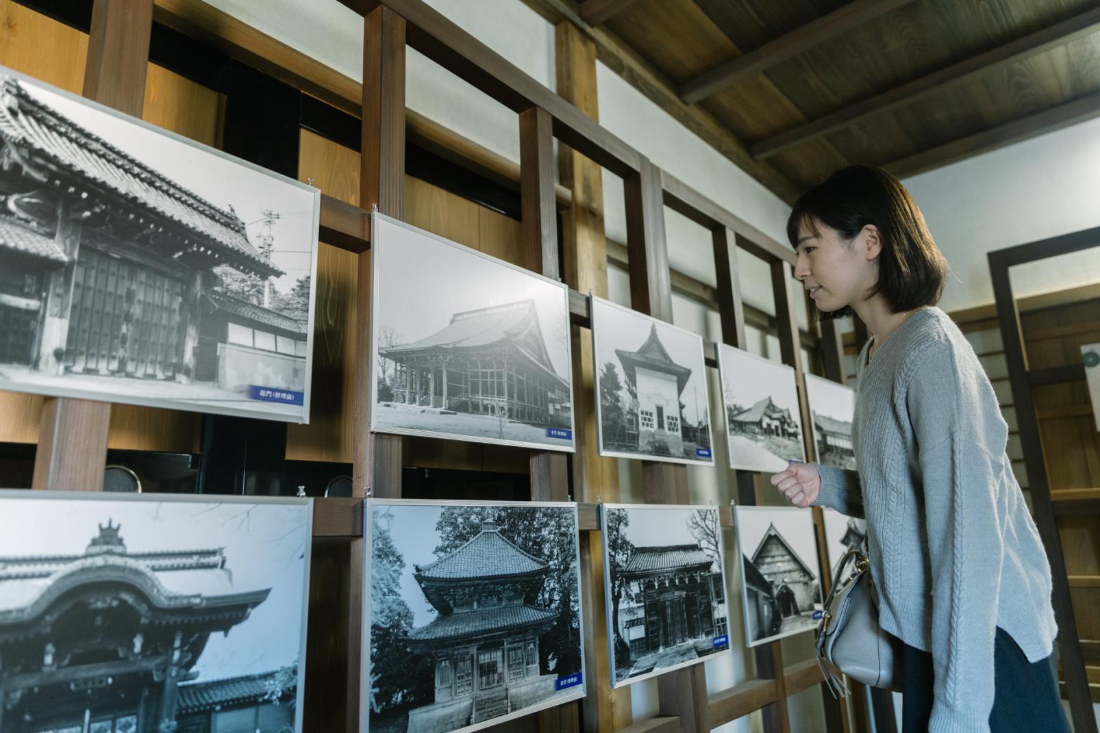 「勝興寺」は建立から200年以上が経過して劣化が激しかったため、1998年から23年かけて大規模な保存・修理が行われました。対象となったのは、本堂、大広間、式台、書院、奥書院、御内仏などの計12棟です。改修工事をする過程で、本堂が建立された江戸後期の姿を基本として修復や整備を進めることが決められました。書院のそばに「平成の大修理」について紹介した部屋があり、修理前の寺の様子の写真、かつての建築材料や建築模型が展示されています。