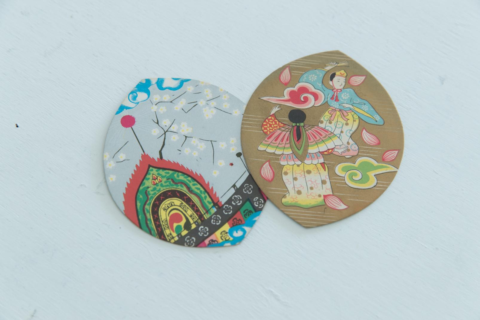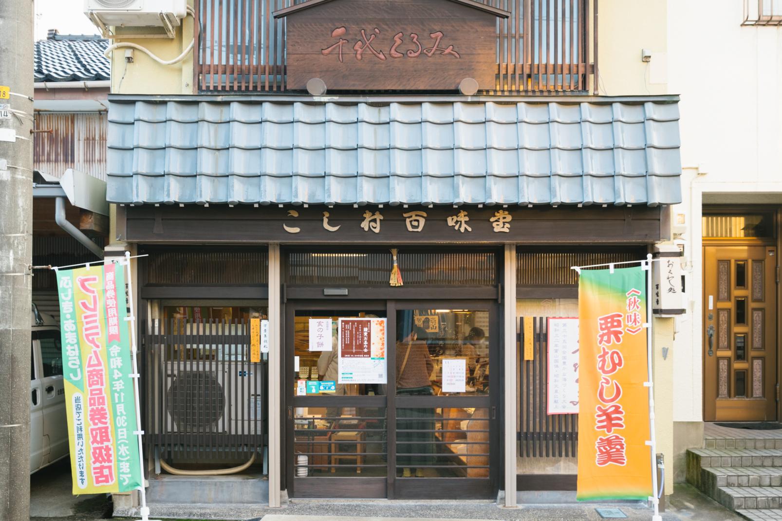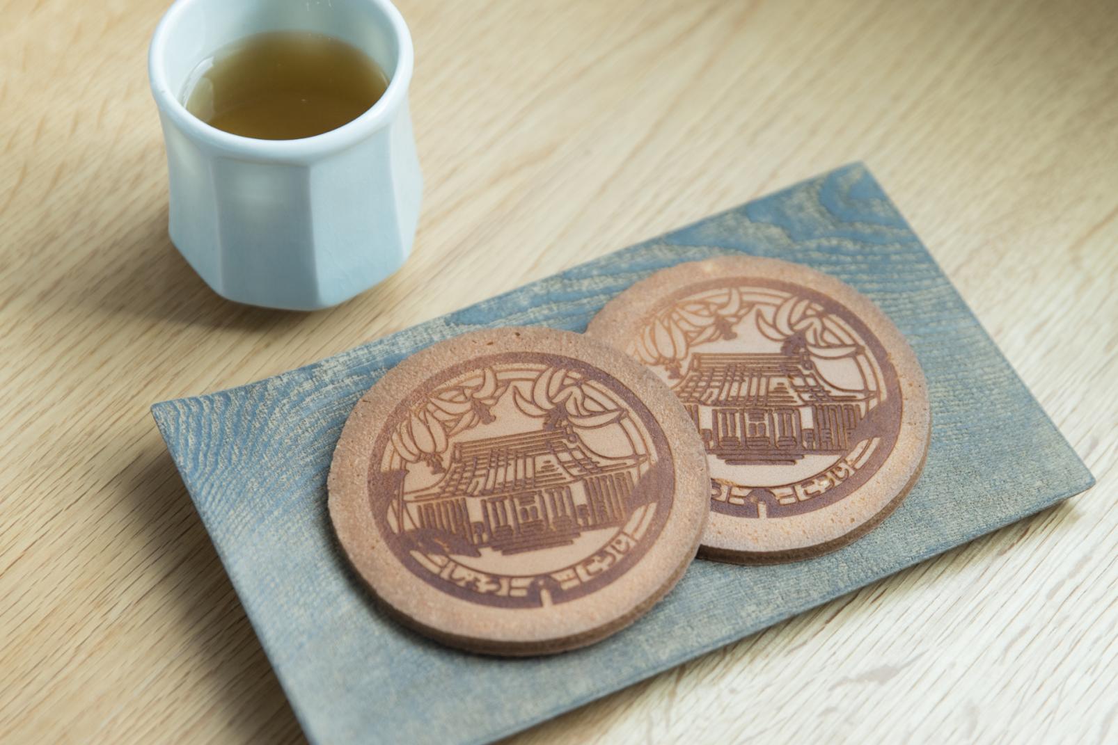 「勝興寺」では、オリジナルの焼型をつけた煎餅、大広間の襖(ふすま)の模様をデザインしたタオルなどを販売しています。近くの商店でも取り扱っているので、ぜひ帰りに立ち寄ってみては。また、地元で三代続く和菓子店「こしむら百味堂」では、「勝興寺」が国宝に指定されてから”七不思議”をモチーフにした上生菓子を作り始めました。銘菓や四季の雅を映す主菓子とともにお土産に選ぶのもおすすめです。