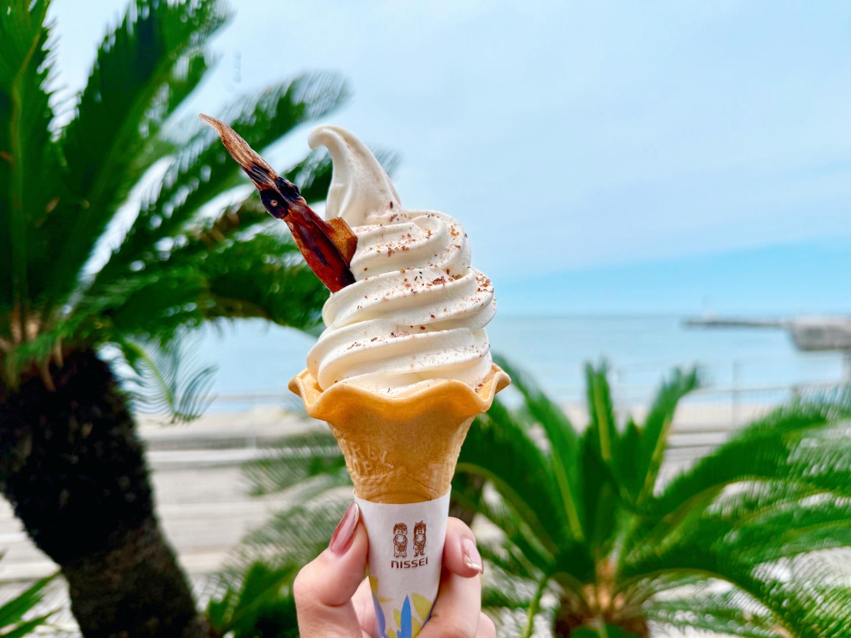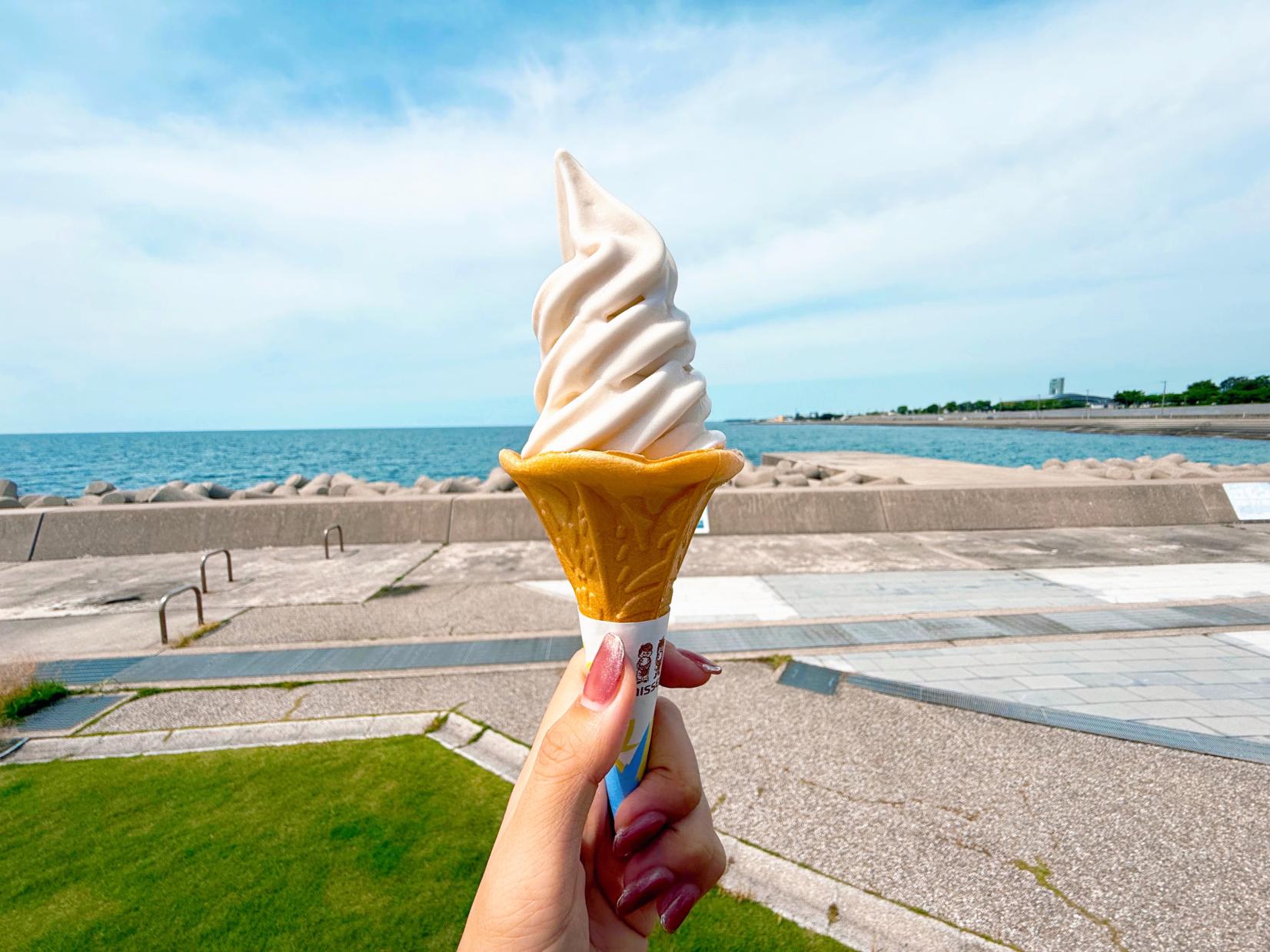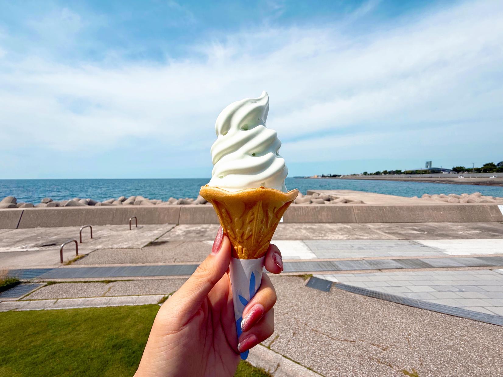 淡いブルーの爽やかなソフト!潮風を感じながら味わいたい名物ソフト