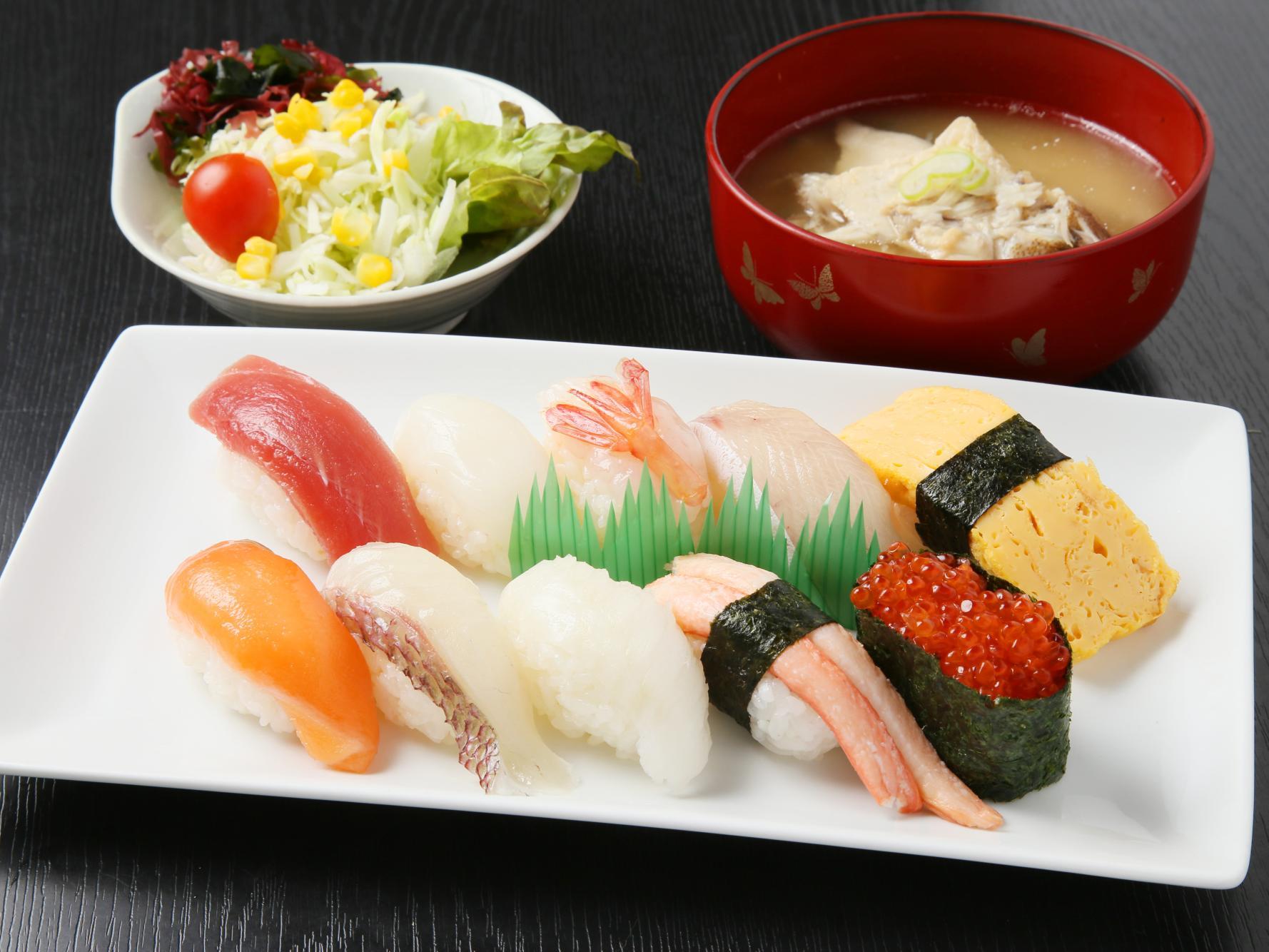 サービス自慢の寿司処です。富山の市場から調達した地魚の「にぎり」が常時良心価格でいただけます。特にランチセットは「にぎり10貫」や「海鮮丼」に汁物と小鉢が付いてお手軽価格で毎日提供されており、平日に10色限定の「びっくりランチ」ともなると握り7館でワンコイン以下と、もてなしの限りを尽くしています。夜のちょい飲みにも嬉しい居酒屋メニューも充実で、いつ訪れても満足できるお店です。