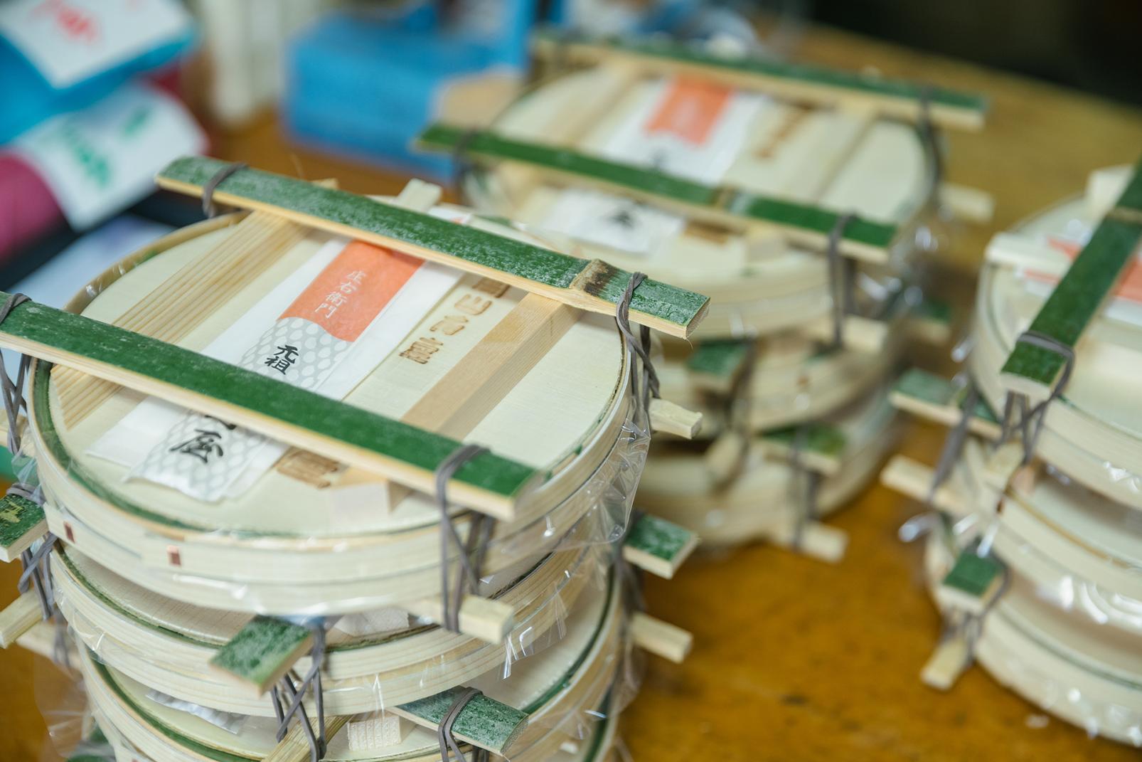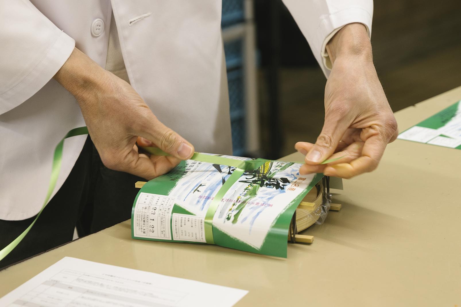 木桶に入って笹に包まれている姿は同じですが、店ごとに素材を厳選し、製法も少しずつ異なります。マスは塩漬けにしてから洗い、合わせ酢で締めます。このときの分量の差、締める時間によって、味に違いが出るのです。ご飯の硬さも店ごとにこだわりを持っています。かつては重石を乗せる時間が長かったのですが、移動や輸送の手段が発展したことや人々の好みの変化など時代の移ろいとともに、重石を短時間にする店が増えました。輪ゴムで蓋を閉めているので、出来上がってからも熟成が進み、マスの旨味がご飯へ広がっていきます。