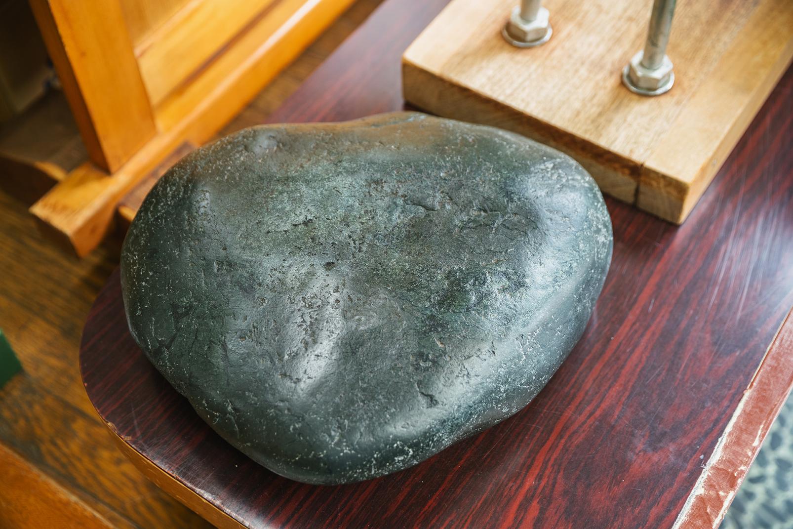 家宝の青石で「ます寿し」を押す[川上鱒寿し店]