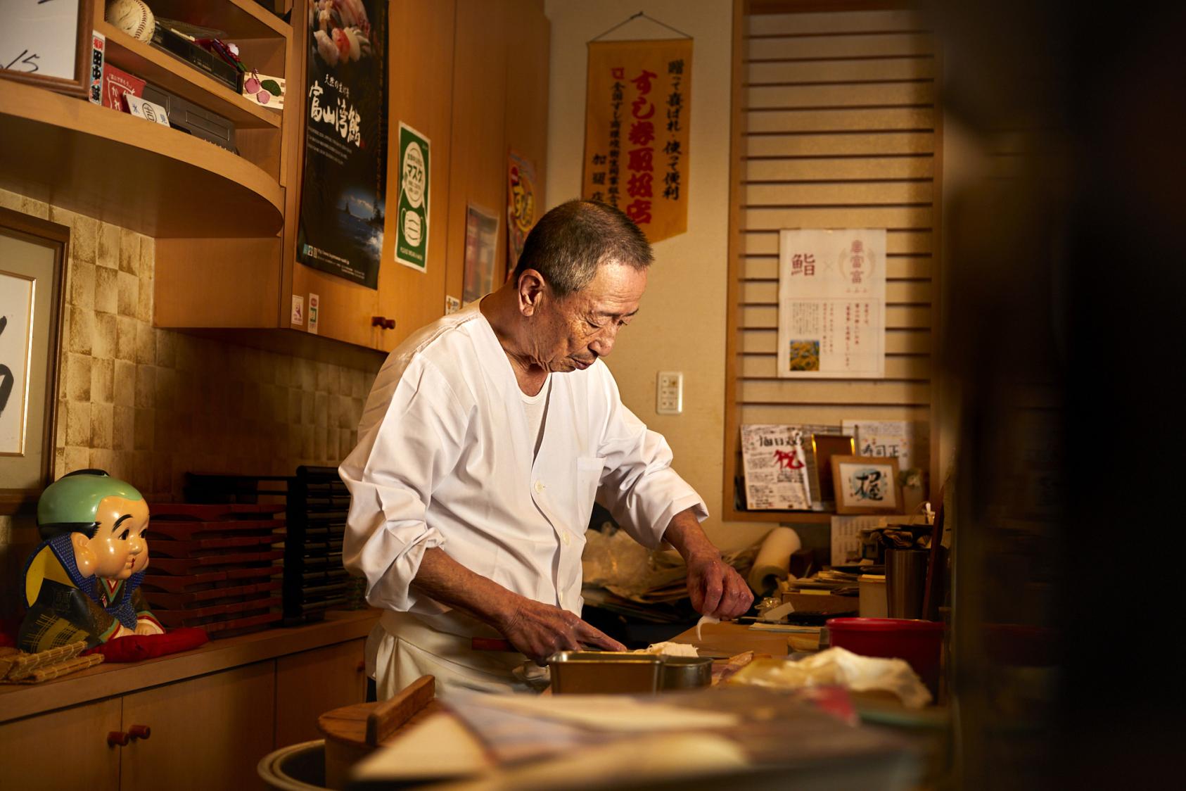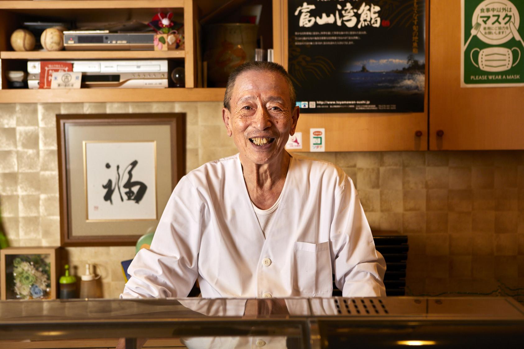 半世紀以上にわたり愛される「江戸前 寿司正」のカウンターの中で、山下さんは今日も鮨を握る。「板場で倒れたらごめんねと、息子には言っているんですよ」と山下さんは笑うが、開店した頃からの常連客や県外から毎月通う常連客も多いそうで、まだまだ引退はできない。「カウンター越しに交わす、お客さまとのコミュニケーションが大事なんです。お客さまの好みが分かるし、富山の文化も伝えられますから。こういった鮨屋の文化を守っていきたいですね」と、山下さんは常に未来を見据えている。