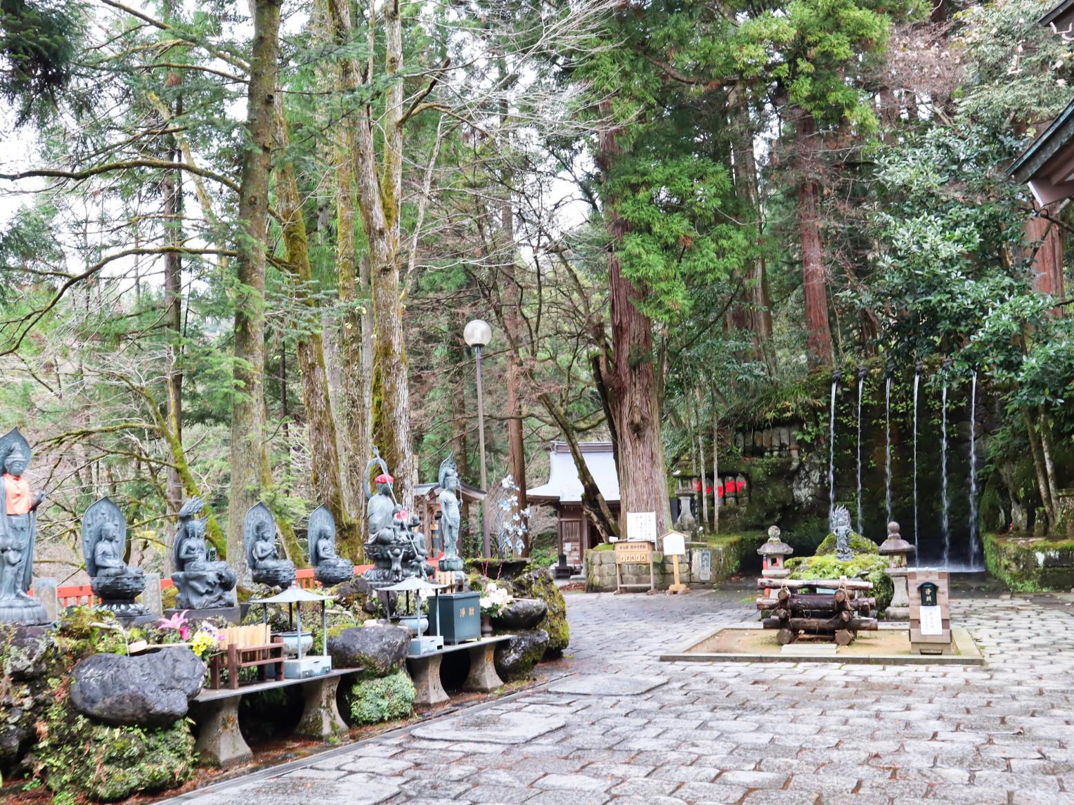 奥に進んでいくと、6つの龍頭から流れ落ちる六本滝が見えてきます。ここではなんと本格的な滝行が体験できるんです! 白装束に着替えて水に打たれることで、心が整ってすっきりリセット。日々の疲れや嫌な事も一瞬で解放される、自分自身と向き合える貴重な時間を過ごせます。