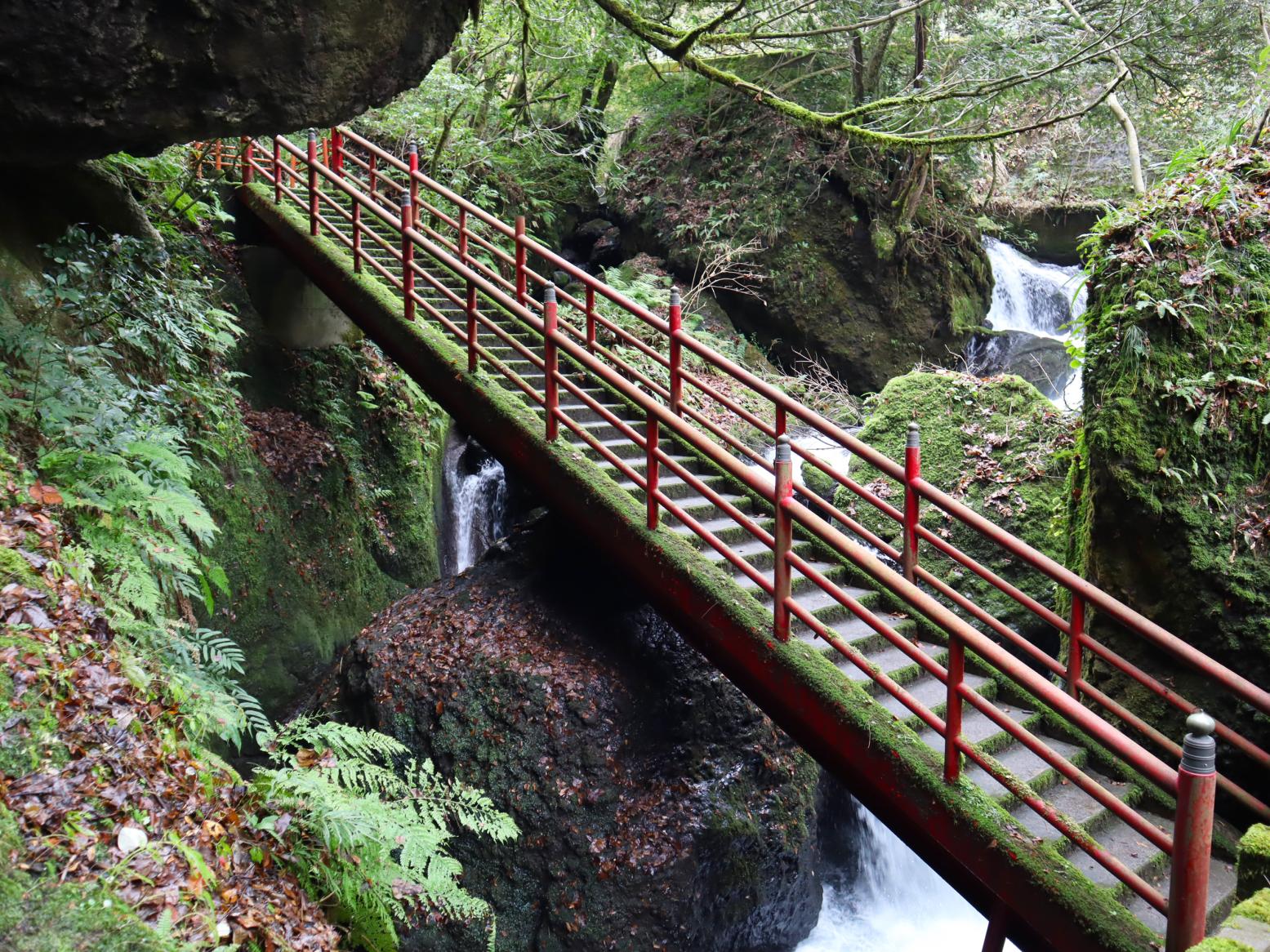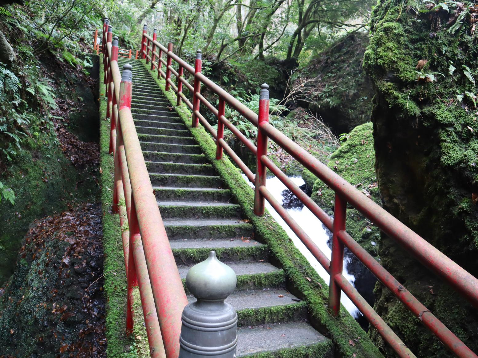 夏は涼しくて秋には紅葉が美しい絶景スポット。散策しているだけでも、マイナスイオンをたっぷり浴びられて、無意識のうちに呼吸が深くなるのを感じます。キーンと澄み切った空気をたっぷり吸えば、パワーチャージも完璧です。苔がたくさんで滑りやすいところが多いので、スニーカーなど歩きやすい靴がおすすめです。