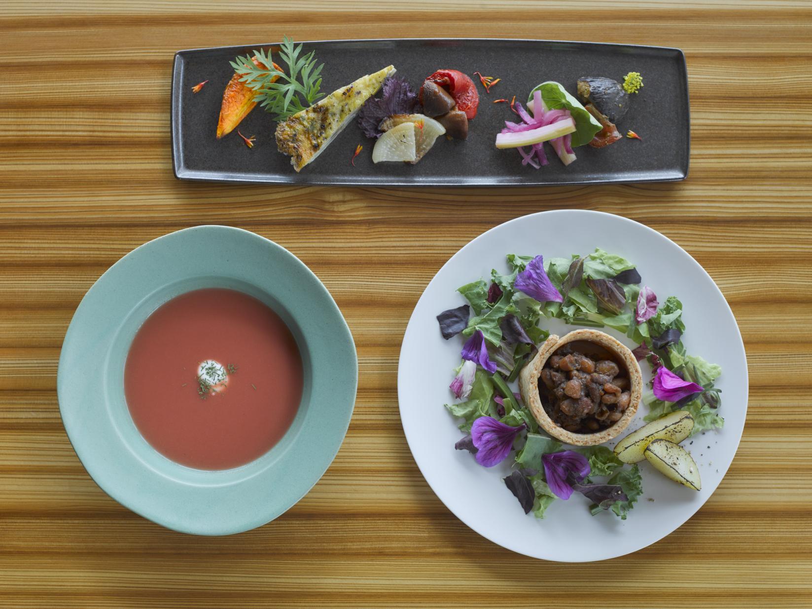 ランチは、地元富山の食材をたっぷり使ったシーズナルなメニュー。前菜、スープ、選べる主菜、デザート、ハーブティーのコースで、免疫力を高める食材やハーブをふんだんに使用。食材を活かした優しい味付けで、体に入ることでさらに元気が湧いてくるようです!