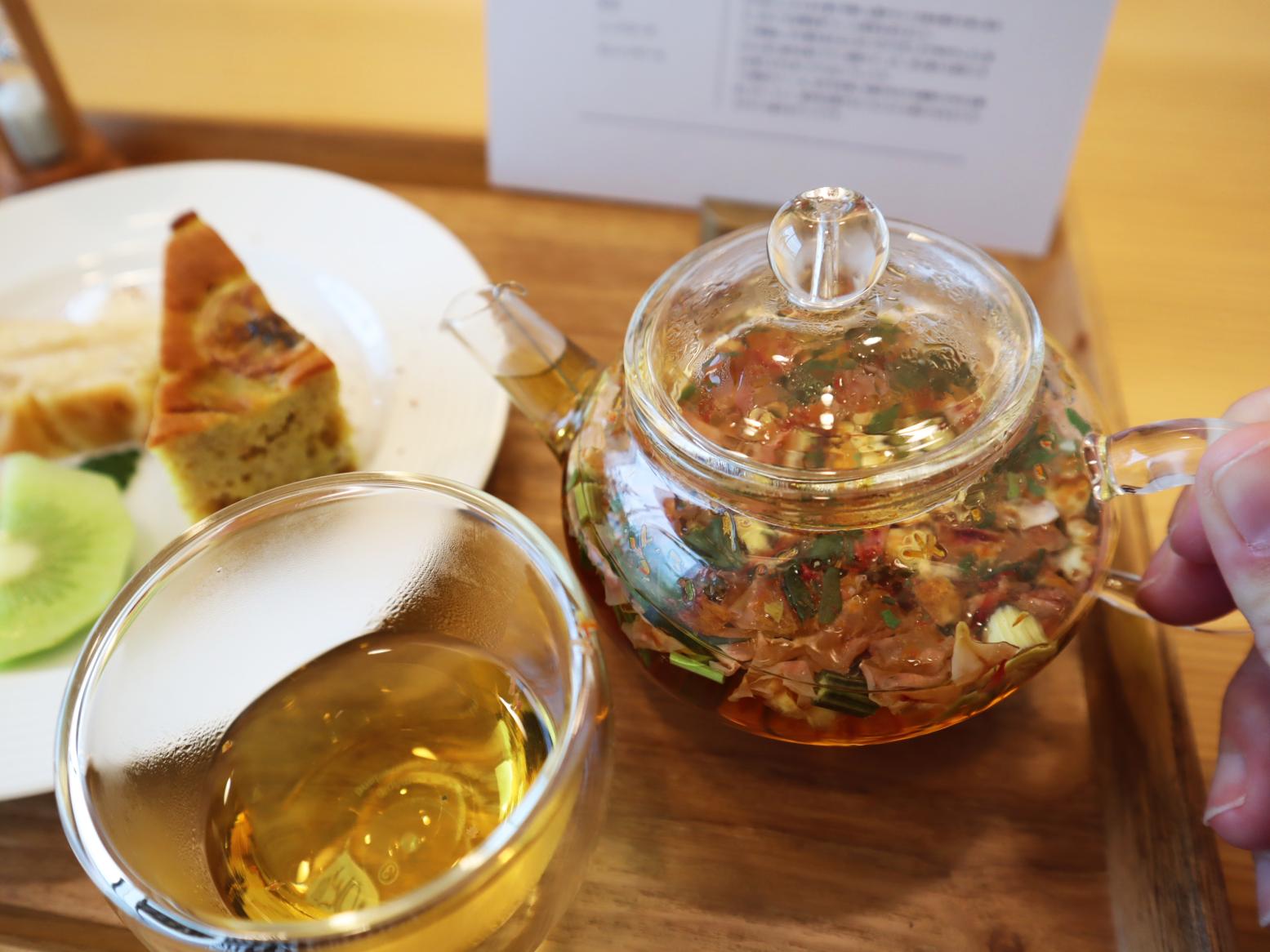 食後のメディカルハーブティーは3種類から選択可能。オーダーしたのは、二十四節気に合わせてブレンドされた「大雪」(この記事の取材は12月)。ヨモギやレッドローズなどのハーブは優しい香りに包まれ、寒さも吹き飛ばすような温まる味でした。これまで飲んできたものとはまるで違っており、芯から美味しく感じました。お腹が満たされ、さらにはメディカルハーブティーで癒され、あまりの居心地の良さについつい時間を忘れそうになりました。