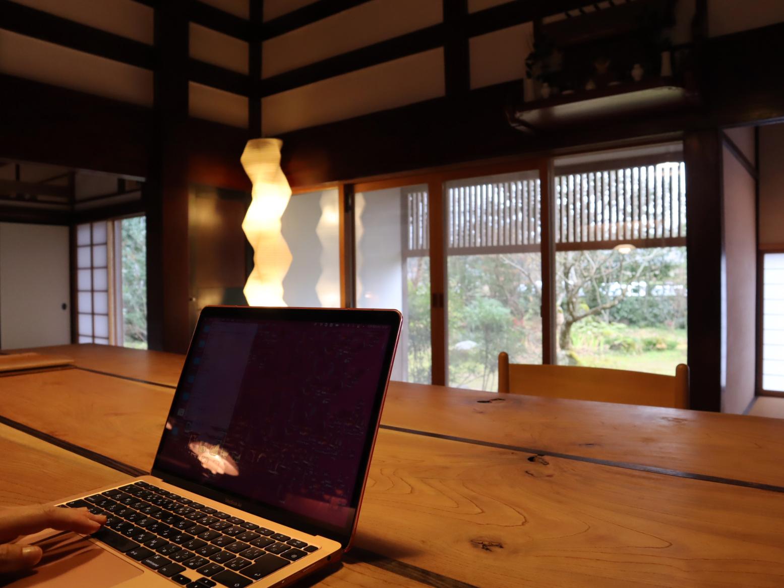 メインとなるダイニングルームの他に、寝室も含めて部屋は4つ。畳敷きの和室や心地よい光の差し込む窓際にテーブルが置かれた空間など、ワークスペースに適した場所がいくつもあるのがポイント! パートナーや友達と一緒に仕事時間を設けても、広々としたプライベート空間なので、お互い干渉せず快適に過ごせそうです。