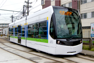 2010年に市内電車に導入された超低床車両です。愛称の「サントラム」は、ポートラム、セントラムに続く3番目の低床車両であることと、太陽を意味するサンの意味が込められています。