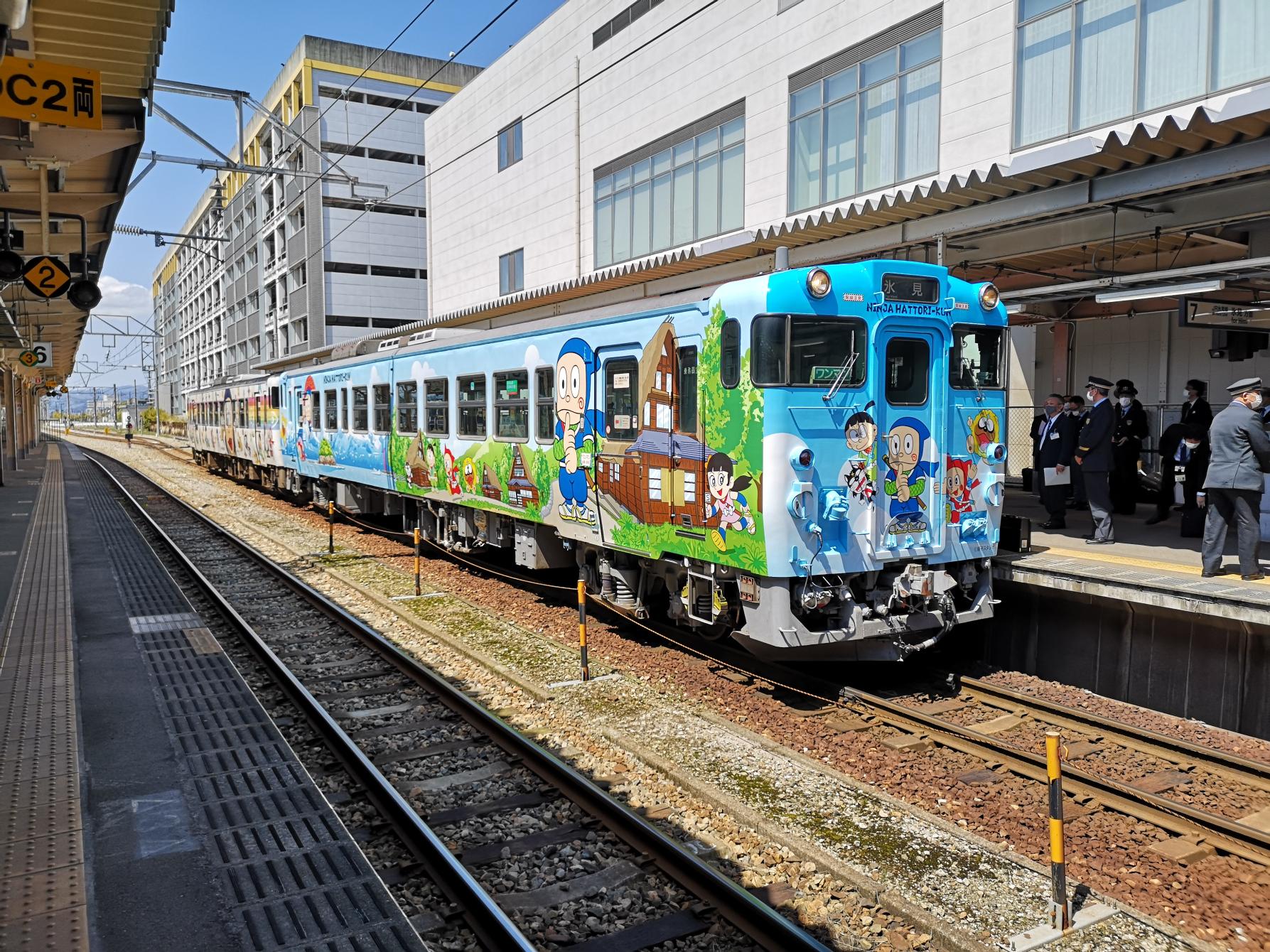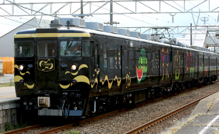 国鉄時代からの旧型車両413 系の1編成をラッピング塗装、トイレの洋式化など簡易改造を行い、平成28 年8月に運行開始しました。イベント以外に通勤通学など定期運行にも活用しています。