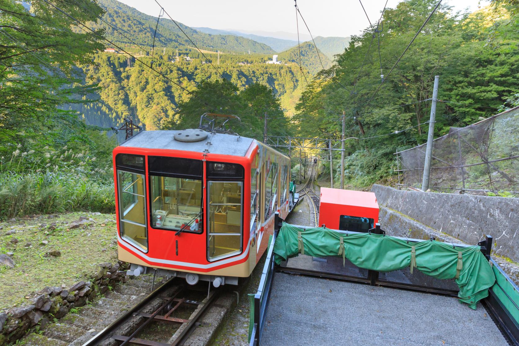 黒部ケーブルカーは、標高差約400m、最大勾配31 度の急斜面を走るケーブルカーです。自然保護と雪害防止から、日本で唯一の全線地下式ケーブルカーとなっています。