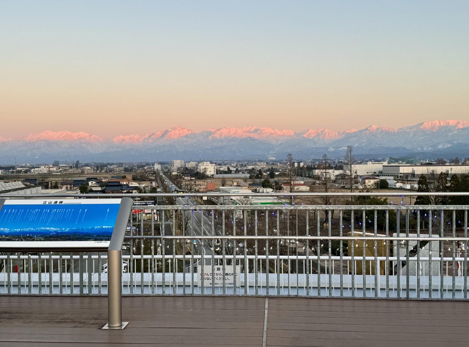 天気が良い日であれば立山連峰を大パノラマで見渡すことができます。入場料無料ですので、どなたでもお気軽にお越しください。