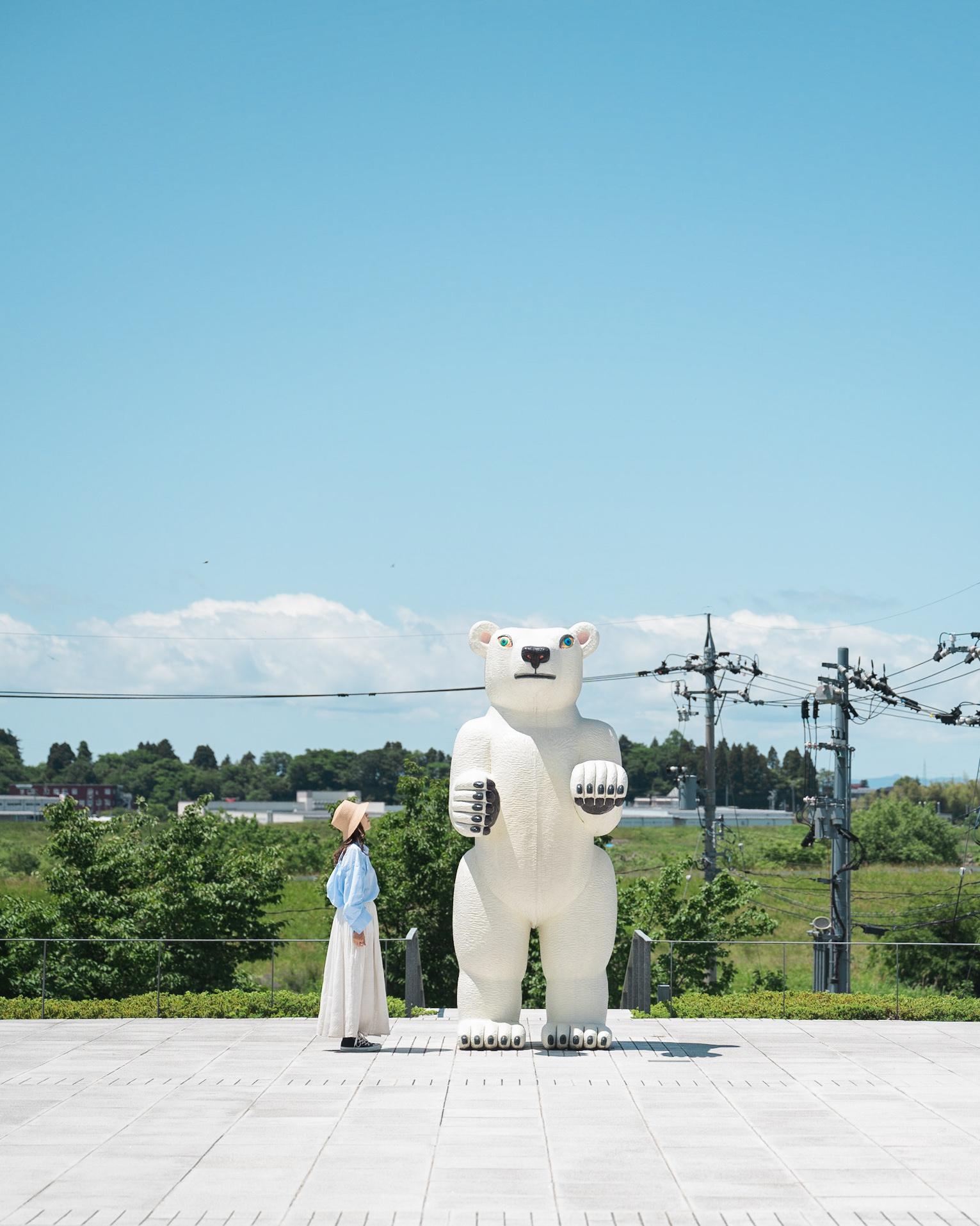 富山県美術館屋外広場にある三沢厚彦さんの白いクマの彫刻。AYUMIさんもInstagramでこの白いクマの彫刻のスポットが以前から気になっていたんだとか。