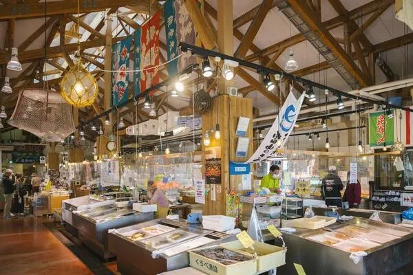 新湊きっときと市場の基本情報「富山湾の宝石」と称されるシロエビをはじめ、紅ズワイガニ、ホタルイカ、ブリ、バイ貝など、旬を迎えた魚介類が豊富に並びます。富山湾の新鮮でおいしい魚を求め、県外客だけでなく、地元の方も多く訪れます。